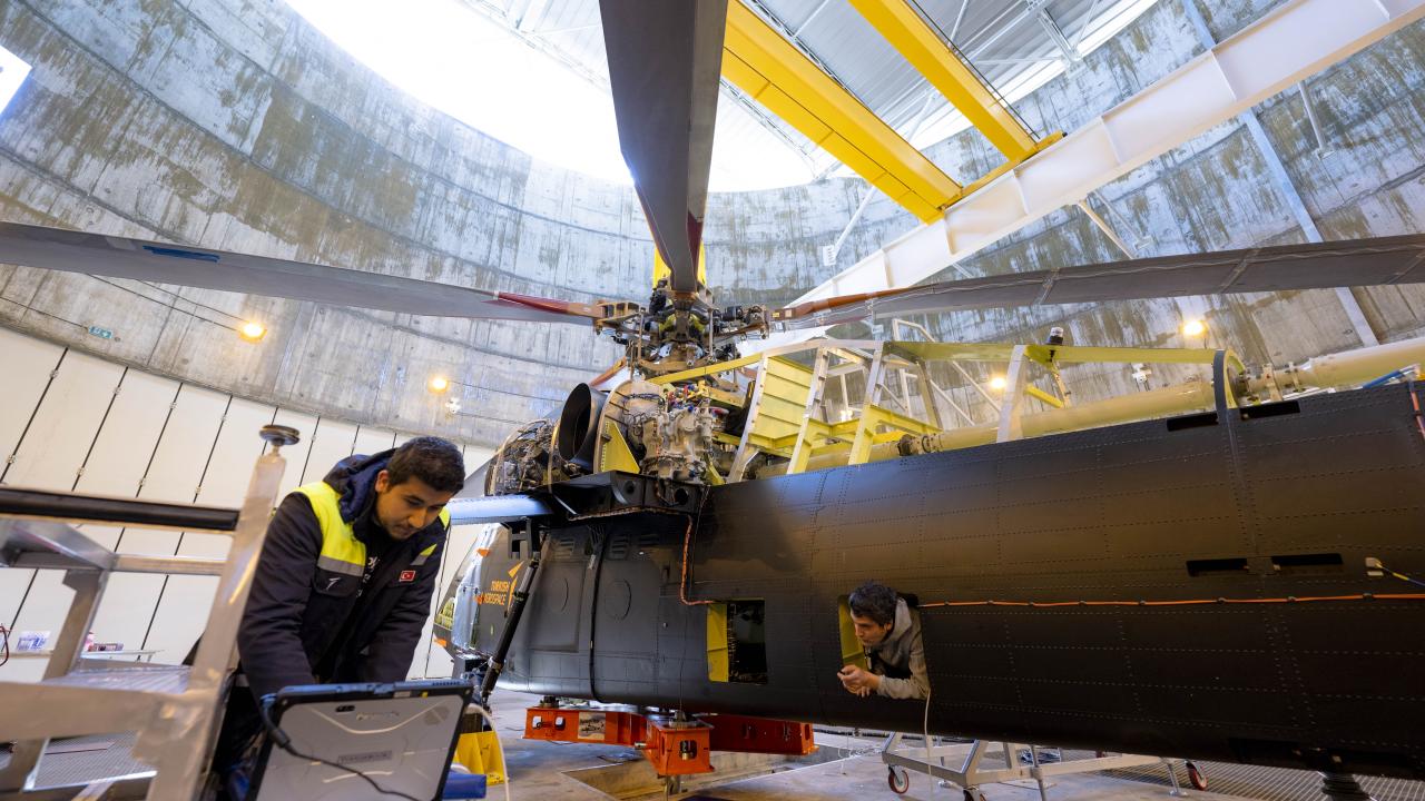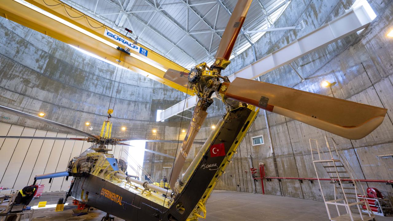 "Burası özellikle zorlu testleri yaptığımız bir binamız. Helikopteri tamamen yere bağlıyoruz. Uçuşta dahi helikopterin görmeyeceği zorluktaki testleri, burada yere bağlı halde yapıyoruz. Helikopteri tamamen yere bağlayıp önce motor çalıştırmalar, rezonans testleri daha sonra yük testlerimizle helikopterimizin tüm sistemlerini, yapısalını, transmisyonunu, rotorunu, motor entegrasyonunu, aviyonik ve elektrik sistem entegrasyonunu tamamen burada doğrulayıp, `Bu aşamadan sonra evet helikopter uçuş için güvenli` diyoruz ve uçuşa veriyoruz. Bu binanın amacı da bu. Yukarıda bir izleme odamız var."