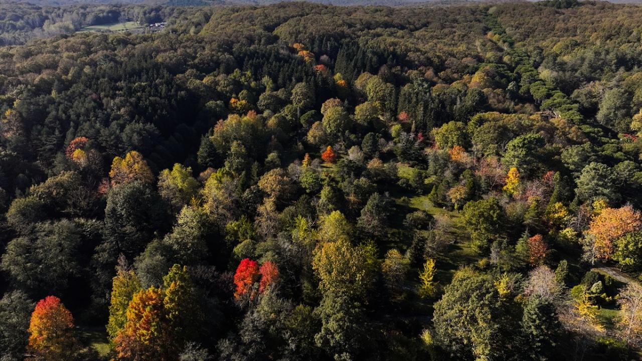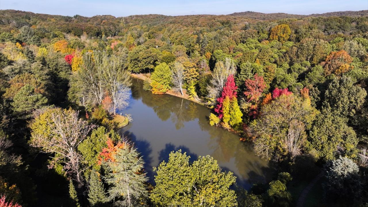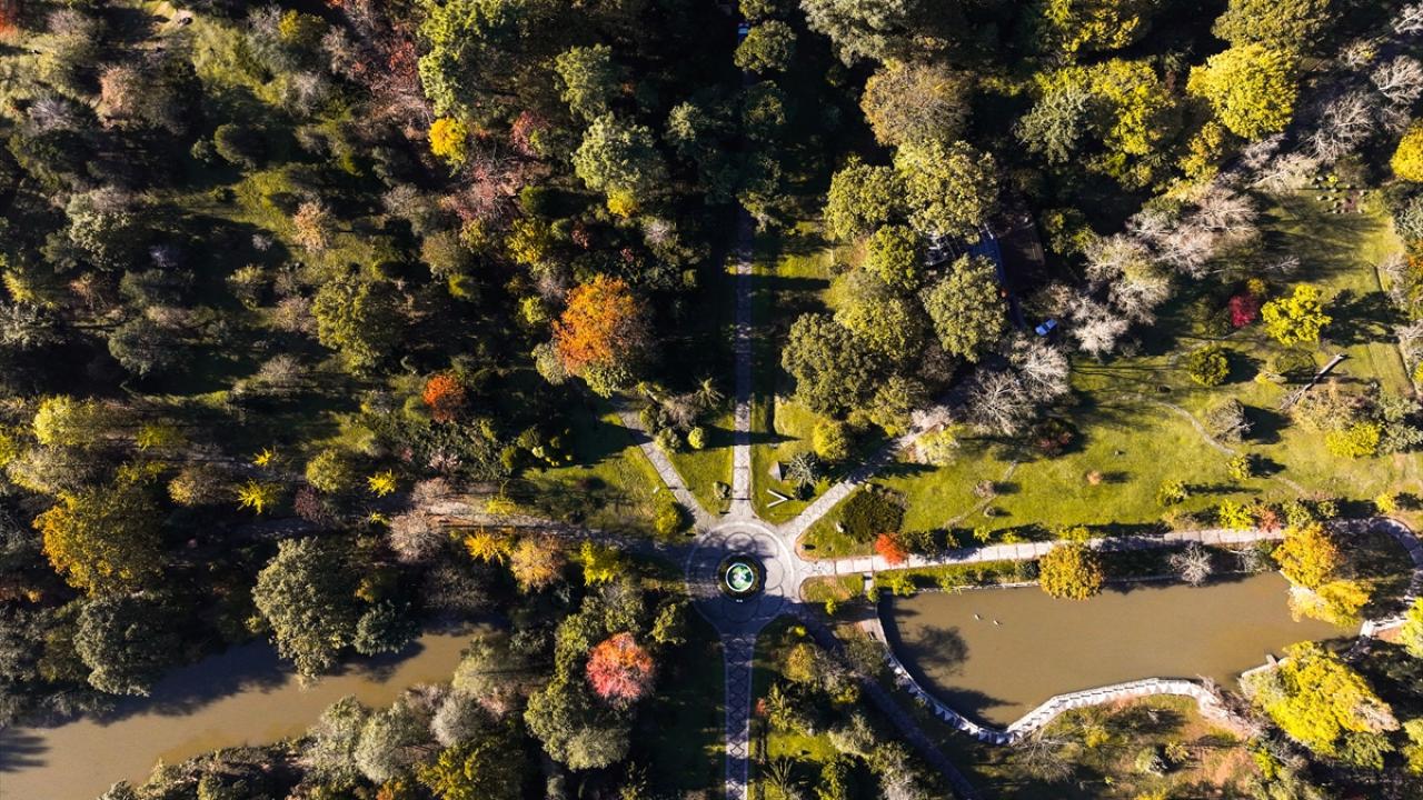 Arboretumda dünyanın çeşitli yerlerinden getirilmiş binlerce bitki türünün sonbahar renklerine bürünmesi ve buradaki gölette yaşayan kuğular ile ördeklerin suda süzülmesi FPV dron ile görüntülendi.