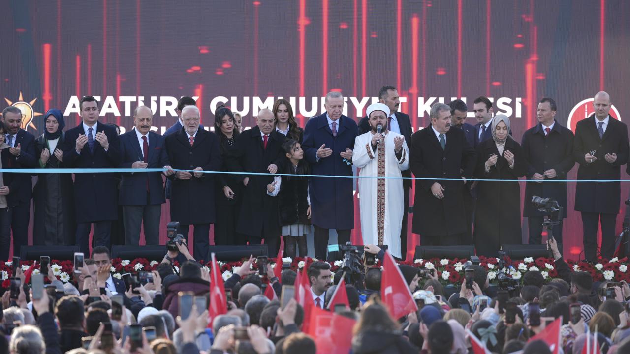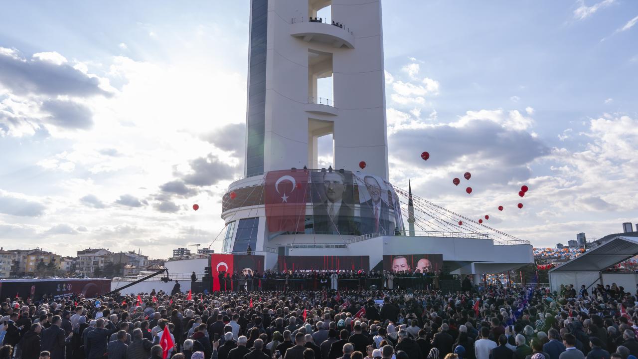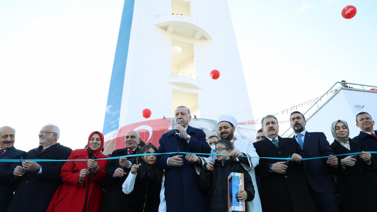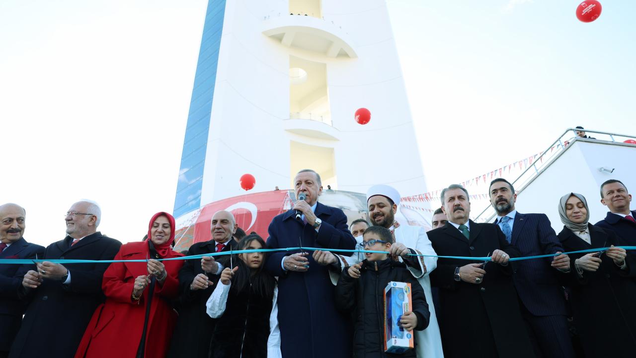 Cumhurbaşkanı Erdoğan`ın konuşmasının ardından yapılan dua ile kurdele kesilerek Atatürk Cumhuriyet Kulesi açıldı.