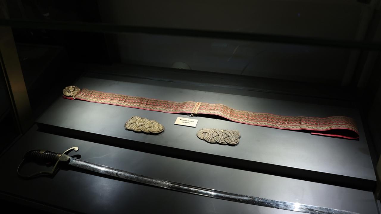 "Hem Cumhuriyet Müzesi deposunda bulunan hem de Türkiye`deki tüm müzelerde depolarda bulunan ve teşhirde olmayan Atatürk`e ait kişisel eşyaları topladık ve bunlardan özel bir seçki hazırladık. Bu yıl ilk kez sergilediğimiz eserlerden oluşan bir sergi açtık. Atatürk`ün Pertek`te Halkevi`nin açılışında giydiği kıyafet ve son resmi açılışında giydiği kıyafet, apoletlerinden ropdöşambırına, sigara muhafazasına kadar diğer kişisel eşyaları depolarda idi. Biz bu eserlerin depolarda bakımlarını yapıyoruz, zaman zaman teşhirlerini değiştiriyoruz. Bugün 31 kişisel eşya ile toplam 34 eseri sergiliyoruz."