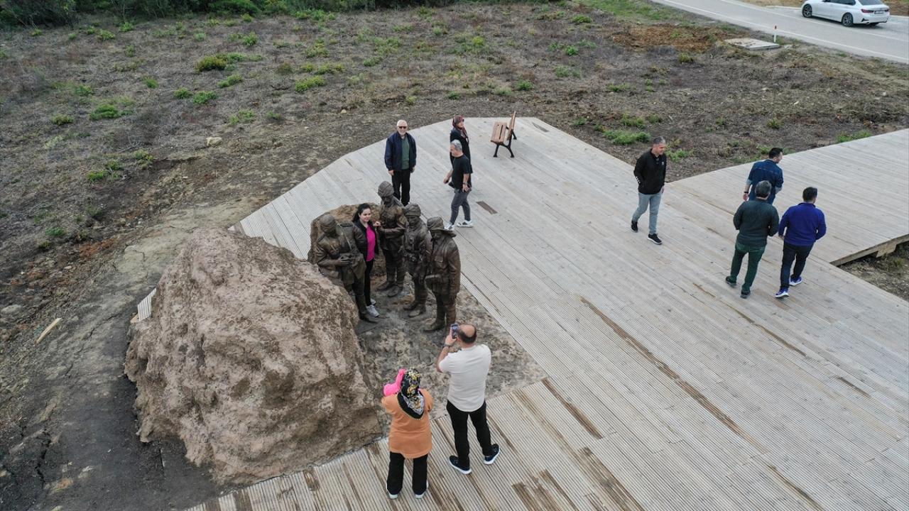 Ziyaretçilerden Ömer Aytar da savaşların yaşandığı bölgeye ilk kez geldiğini belirterek, "3 arkadaş izin günümüzü burada değerlendirdik. Bölgedeki şehitlikleri gezdik. Atatürk`ün o tarihi pozunun heykelini gördük, çok güzel olmuş. Şehitlerimizi yad etmek, buraları görmek bizi çok etkiledi. Mutlu olduk." dedi.