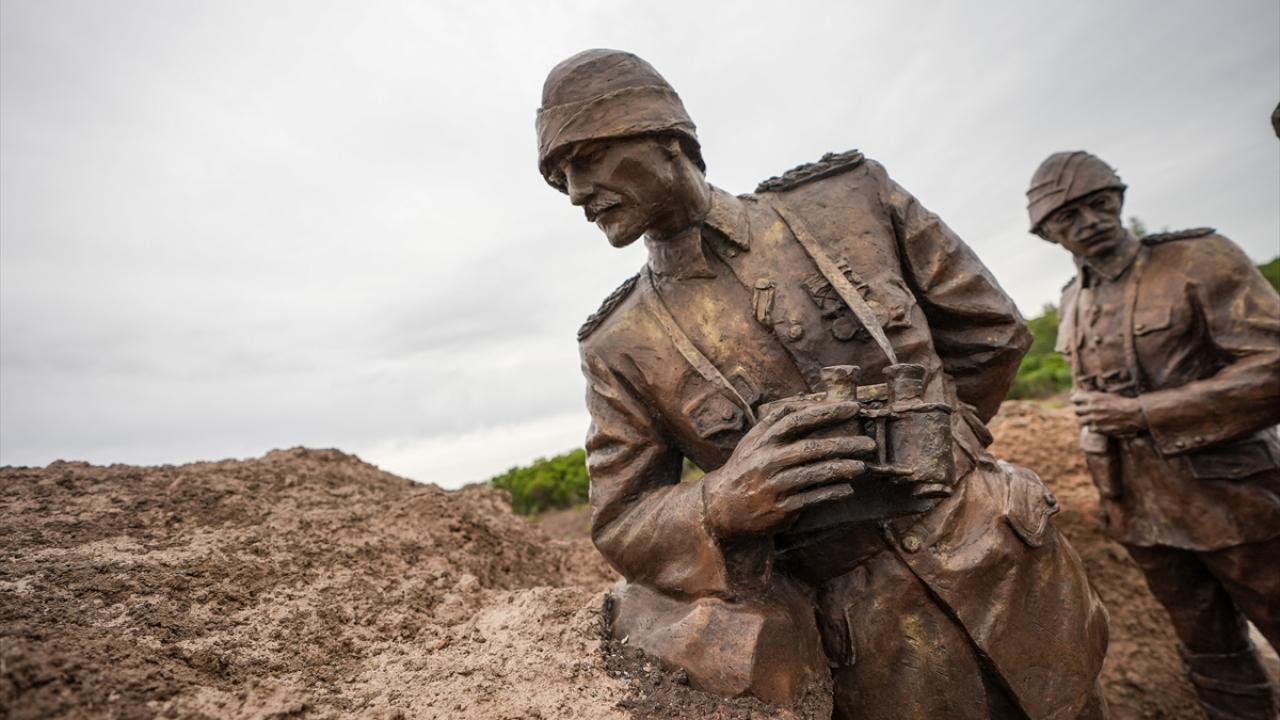 Türkiye Cumhuriyeti'nin Kurucusu Büyük Önder Gazi Mustafa Kemal Atatürk'ün Çanakkale Muharebeleri'nde Conkbayırı civarındaki bir siperde, arkasında 3 askerle düşmanı gözetlerken çekilen fotoğrafı, heykel haline getirilerek ziyarete açıldı.