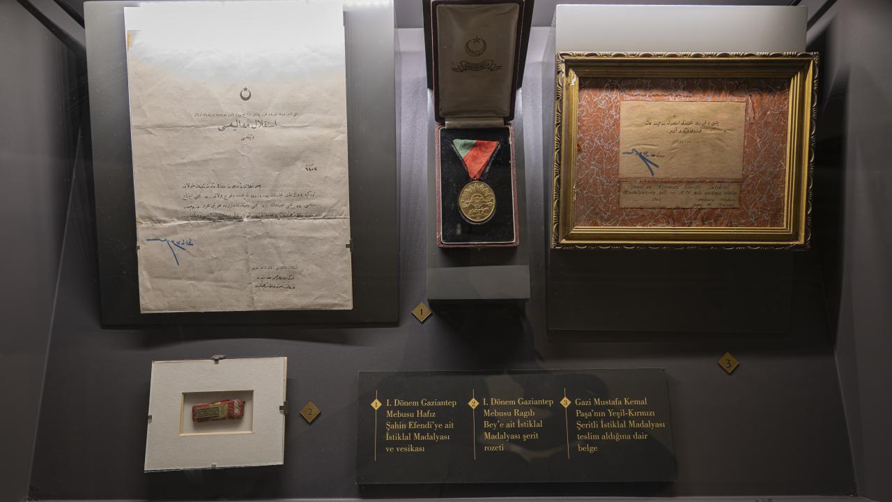 Bu kapsamda 1. TBMM Binası`ndaki Kurtuluş Savaşı Müzesi`nde ilk kez Mustafa Kemal Paşa`nın Yeşil-Kırmızı Şeritli İstiklal Madalyası`nı teslim aldığına dair vesika vatandaşların ziyaretine açıldı.