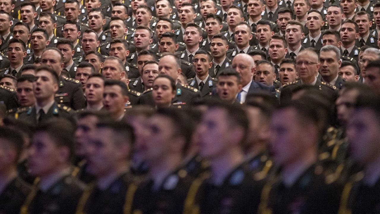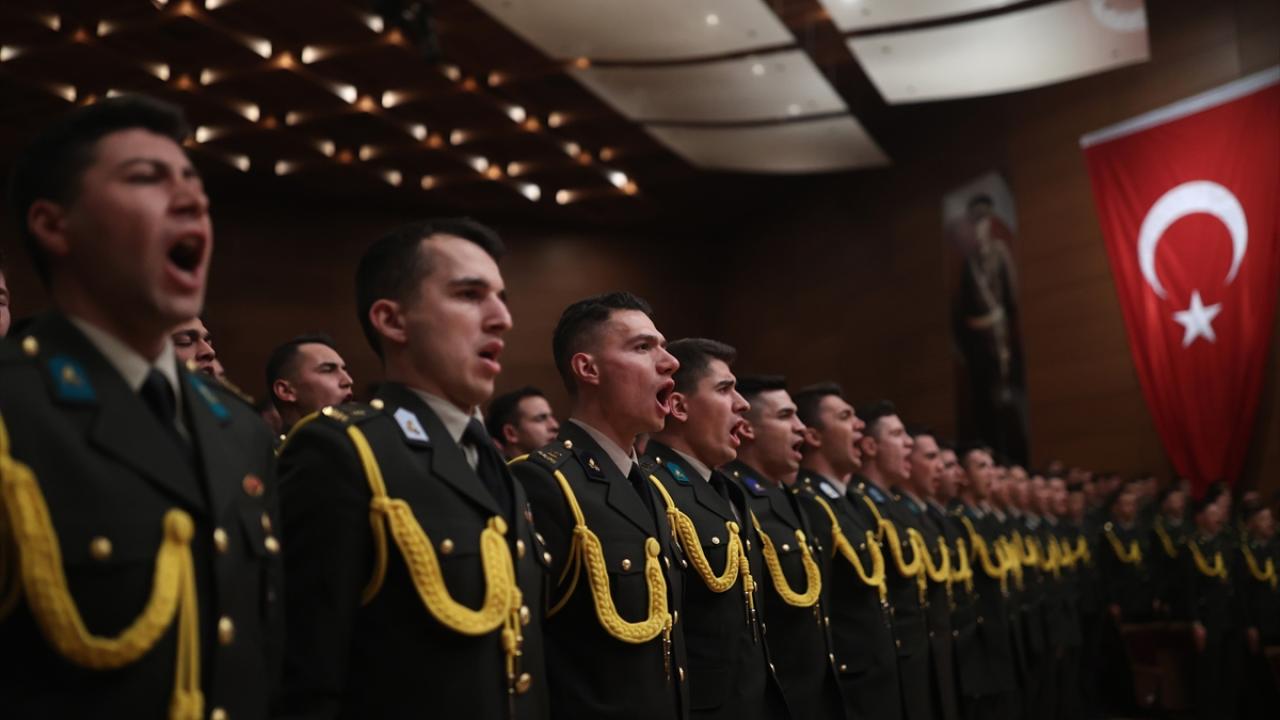 Sonrasında Harbiyeliler, "Atatürk`ün ilke ve inkılapları ışığında mensubu olmaktan gurur duyduğumuz yüce Türk milleti için canımızı feda etmeye daima hazırız. Atatürk`ün ifadesiyle Türk milleti çalışkandır, Türk milleti zekidir, Türk ulusu güçlüdür. Türkiye Cumhuriyeti sonsuza kadar yaşayacaktır. Ne mutlu Türküm diyene." ifadelerini kullandı.
