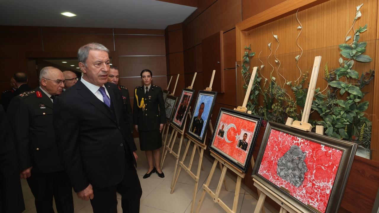 Törenin ardından Bakan Akar, beraberindeki TSK komuta kademesi ile Harbiyeliler tarafından yapılan resimlerin yer aldığı sergiyi gezdi.