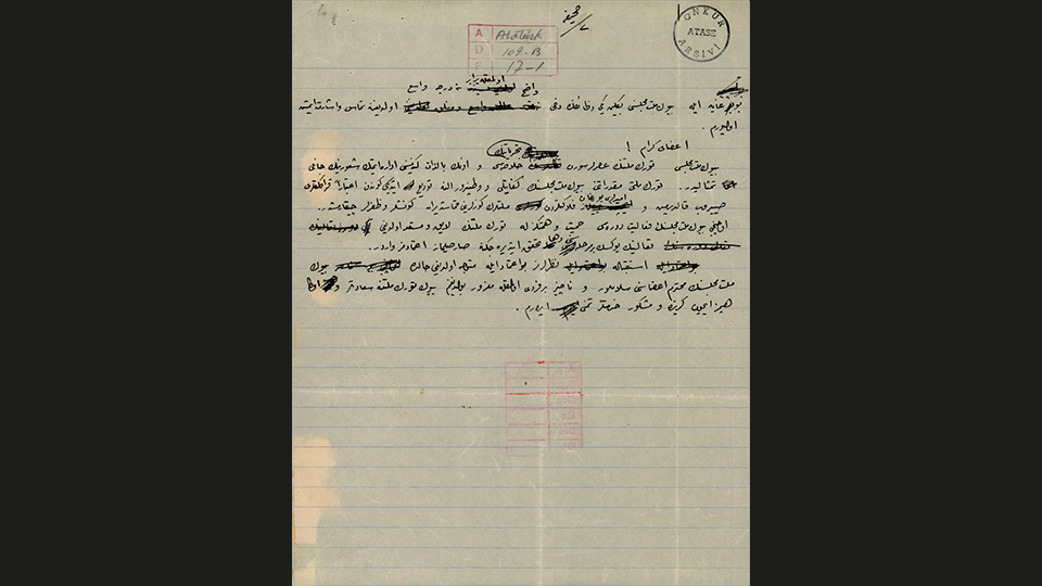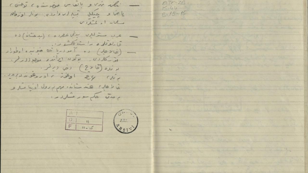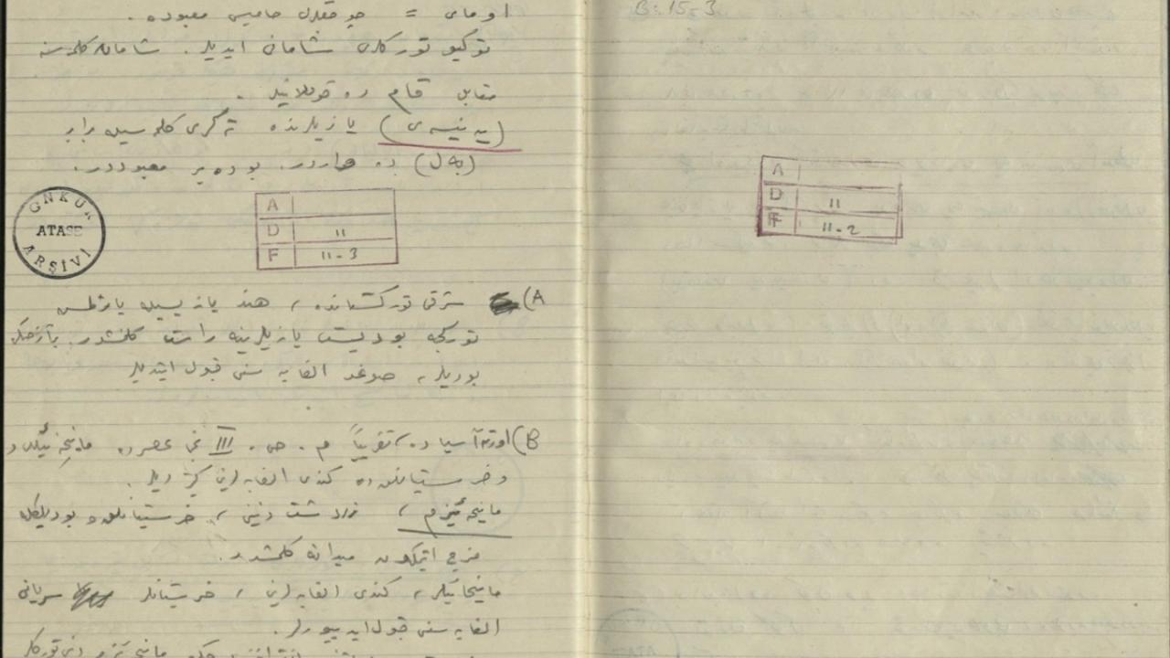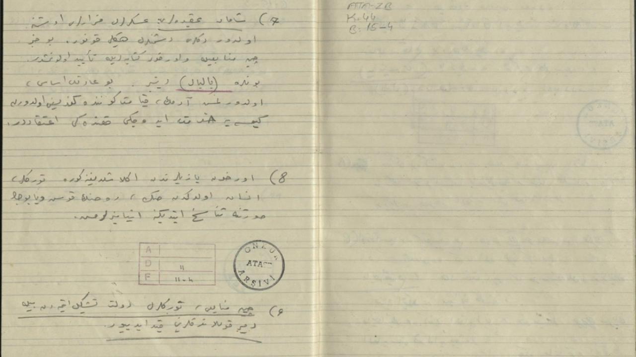 Milli Savunma Bakanlığı Yönetim Hizmetleri Genel Müdürlüğü Arşiv ve Askeri Tarih Daire Başkanlığından (ATASE) Cumhurbaşkanlığı Devlet Arşivlerine devredilen Atatürk Koleksiyonu'nda, Cumhuriyetin Kurucusu Büyük Önder Mustafa Kemal Atatürk'ün el yazısı notları dikkati çekiyor.