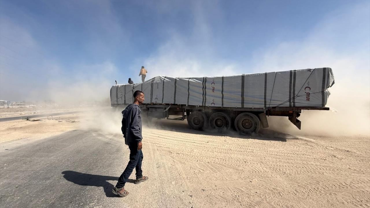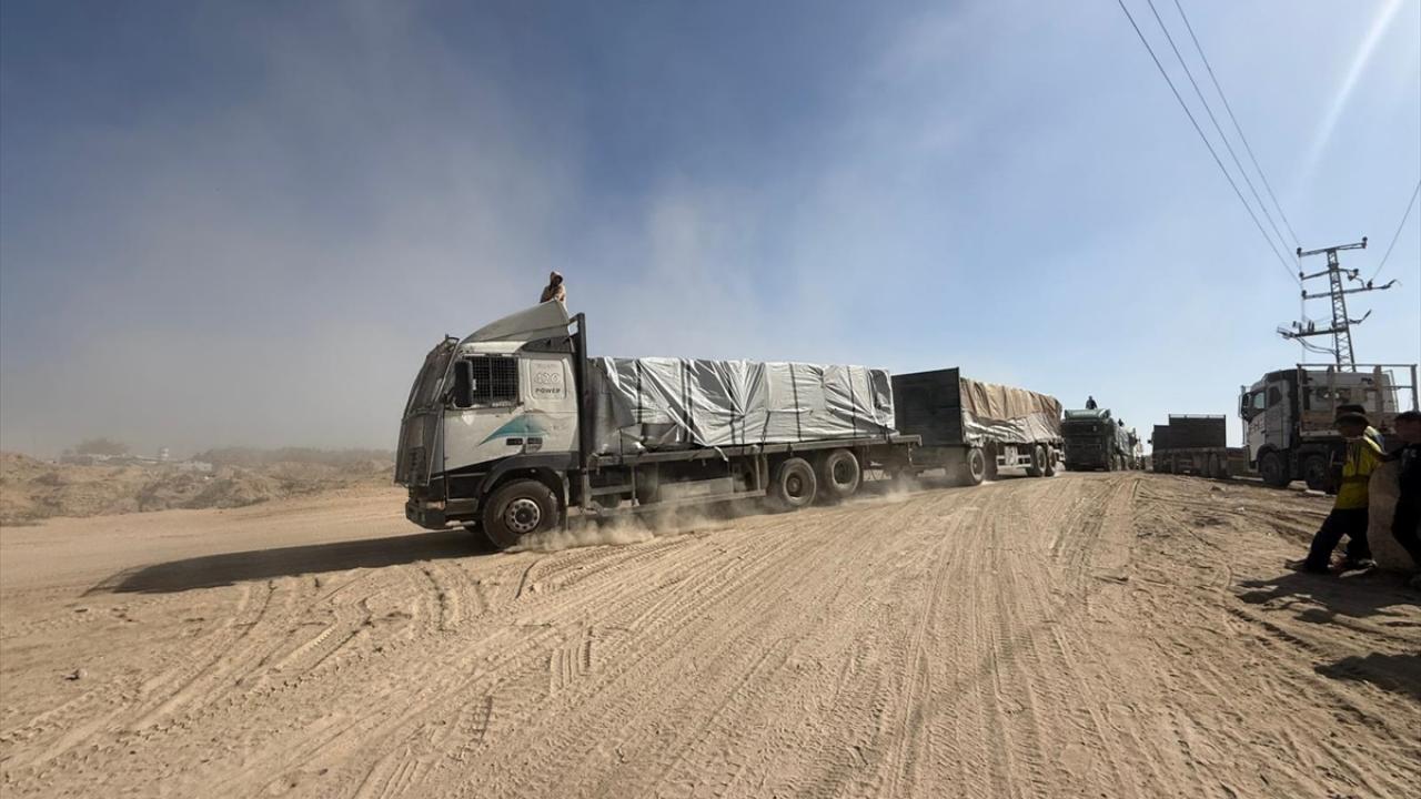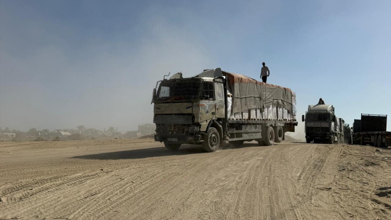 Gıda ve akaryakıt yardımı taşıyan tırlar, Birleşmiş Milletler`e bağlı uluslararası kuruluşların gözetiminde, Gazze`deki Kissufim Sınır Kapısı üzerinden Gazze Şeridi`nin doğu kesiminde yer alan Deyr Balah`a ulaştı.