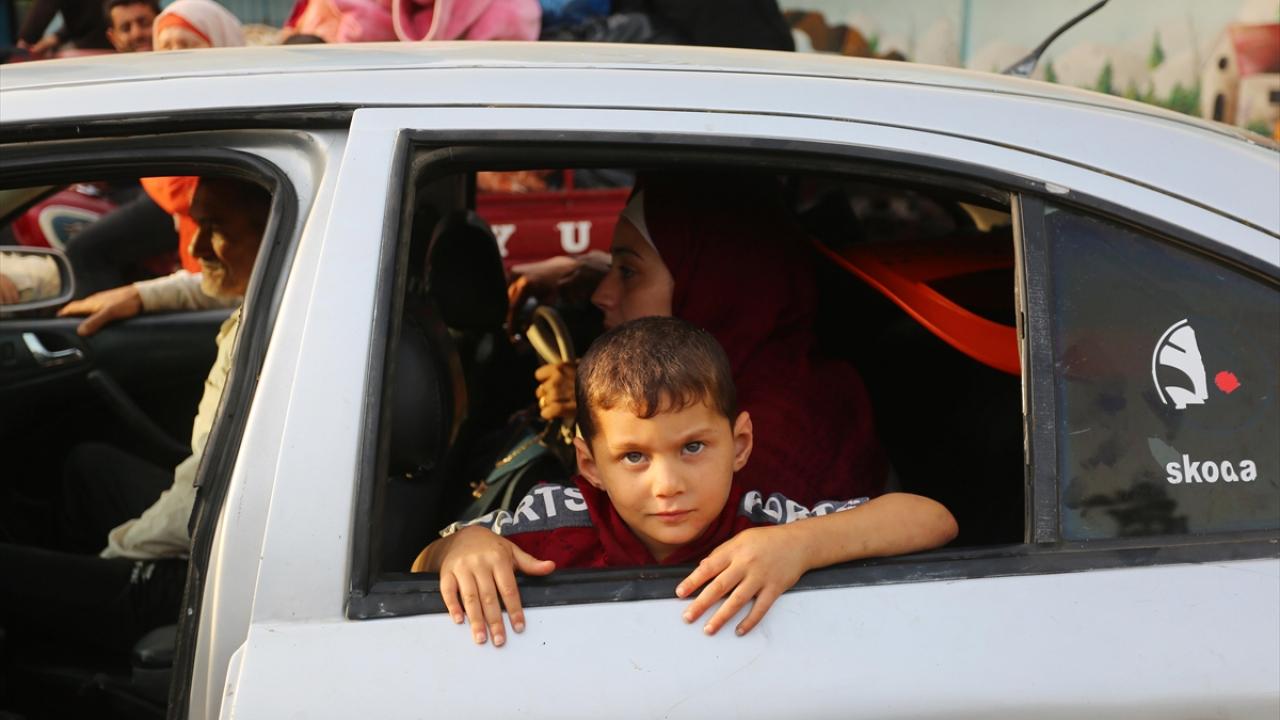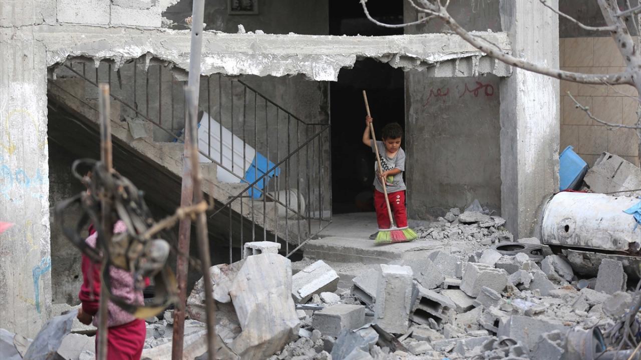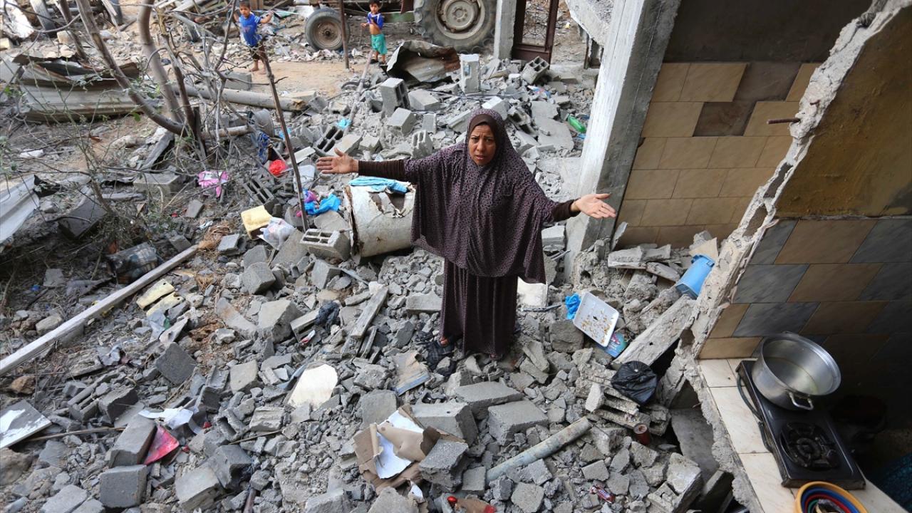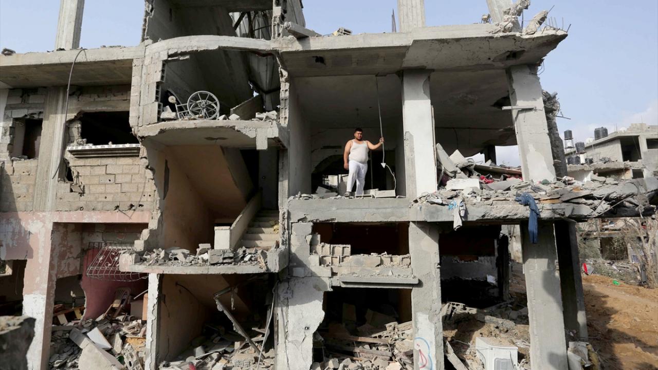 İsrail ile Hamas arasında varılan ateşkes anlaşmasının yürürlüğe girmesinin ardından, sığındıkları güvenli bölgeden ayrılarak Gazze Şeridi'nin Beyt Hanun kentindeki Filistinliler, İsrail'in saldırıları nedeniyle harabeye dönmüş evlerine geri döndü.