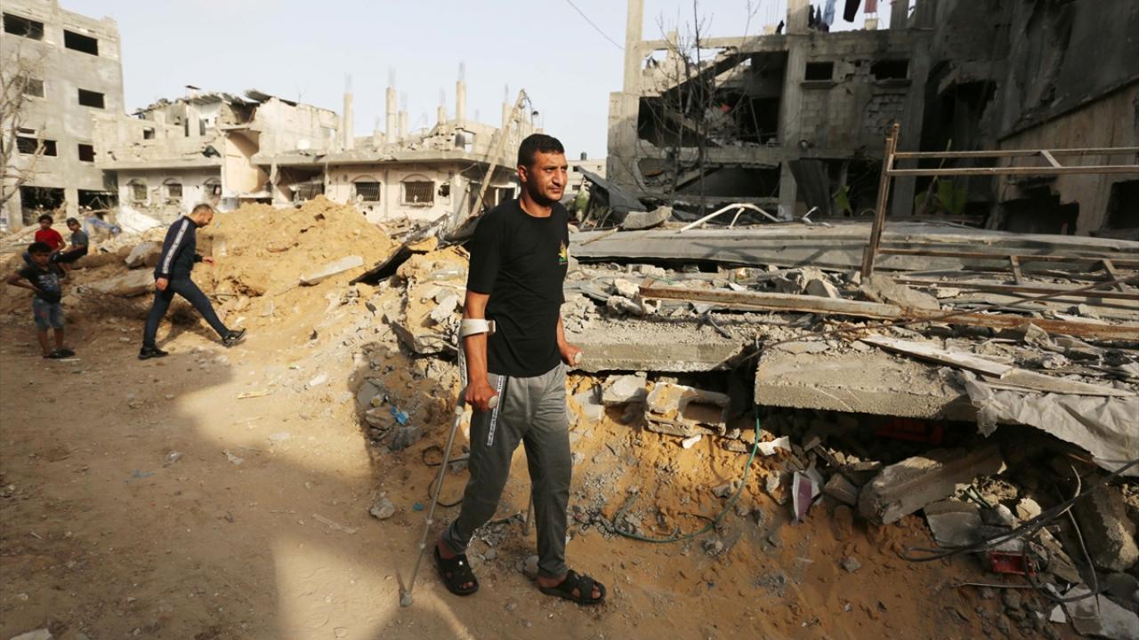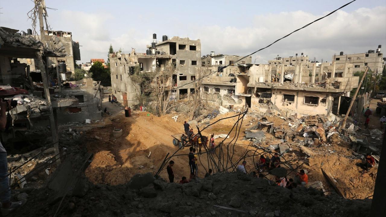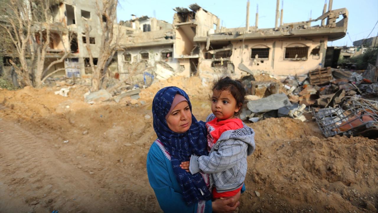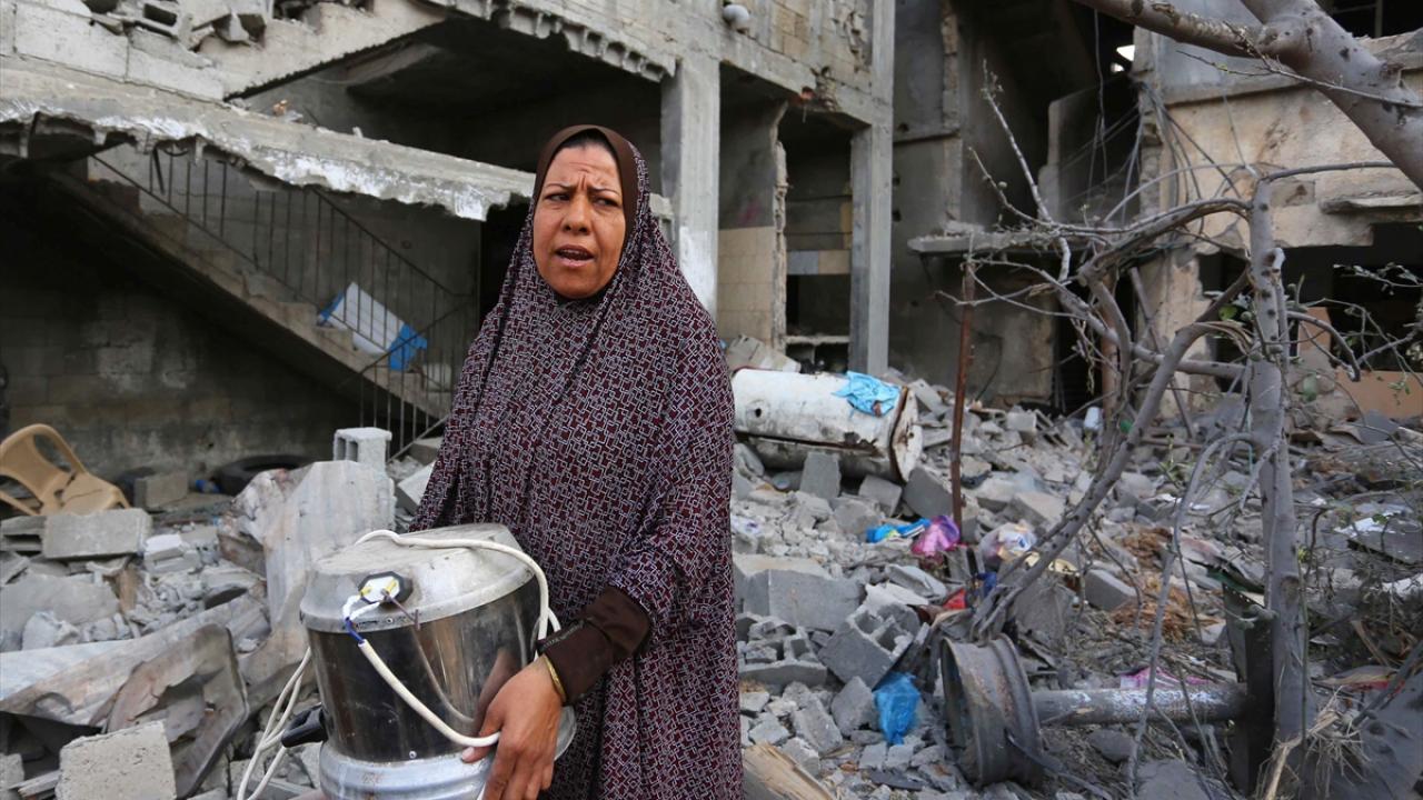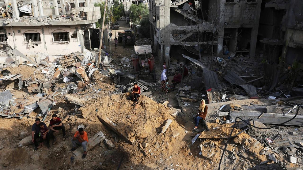İsrail ile Hamas arasında varılan ateşkes anlaşmasının yürürlüğe girmesinin ardından, sığındıkları güvenli bölgeden ayrılarak Gazze Şeridi'nin Beyt Hanun kentindeki Filistinliler, İsrail'in saldırıları nedeniyle harabeye dönmüş evlerine geri döndü.