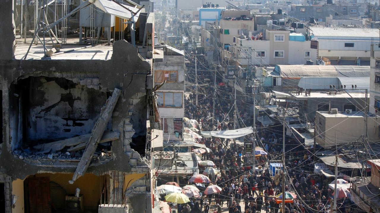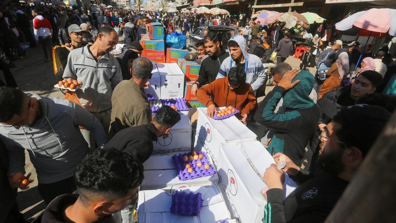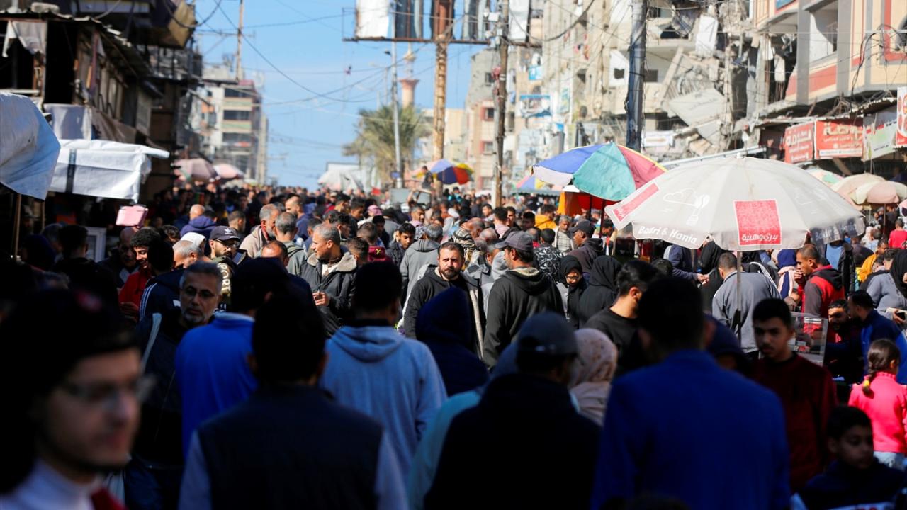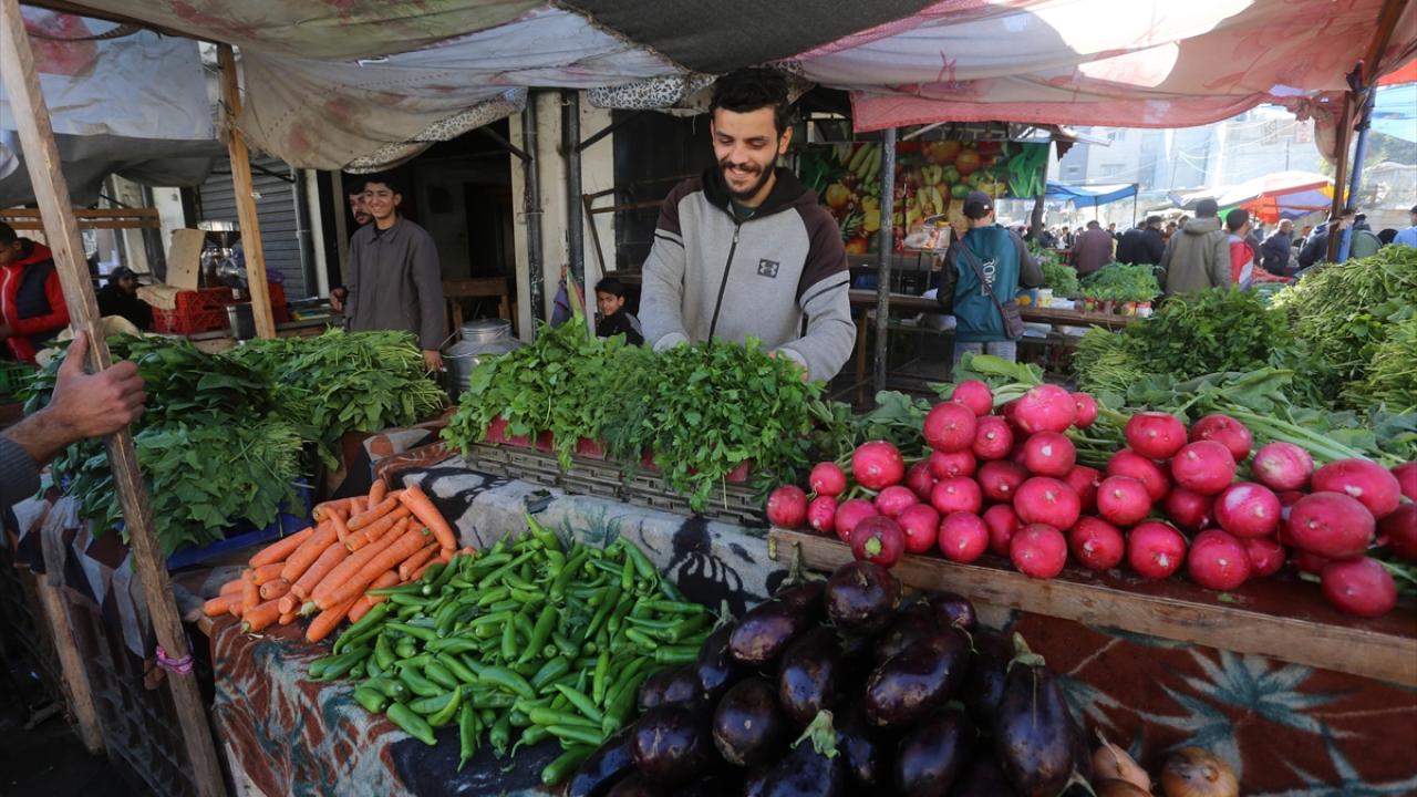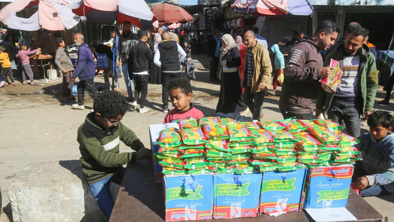 Hamas ile İsrail arasında varılan mutabakatın ardından Gazze'de ateşkesin yürürlüğe girmesinin ardından Gazze Şeridi'nin orta kesiminde yer alan Nuseyrat Mülteci Kampı'ndaki Filistinliler, İsrail saldırıları sonucu ağır yıkıma uğrayan binalar arasında günlük yaşamlarını sürdürüyor.