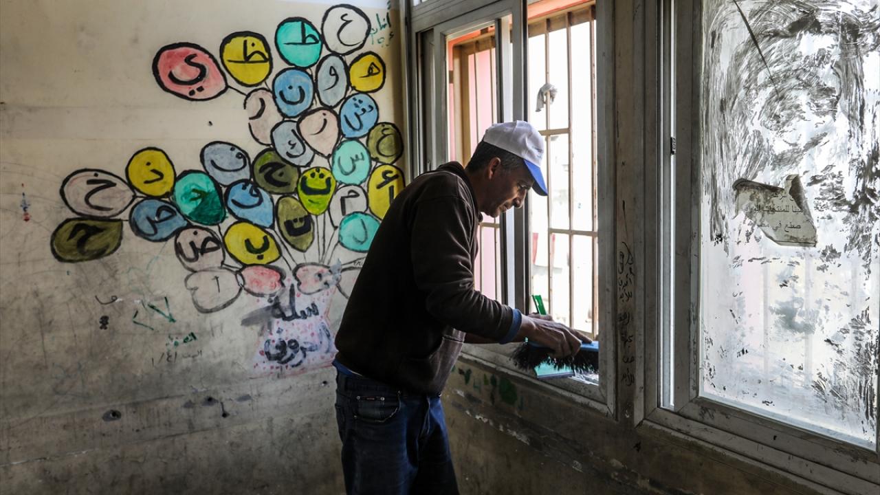 Gazze'de ateşkes anlaşmasının yürürlüğe girmesinin ardından, bir grup eğitim çalışanı savaşın yol açtığı yıkımın izlerini silmek amacıyla Refah'taki okullarda temizlik ve onarım çalışmalarına başladı.