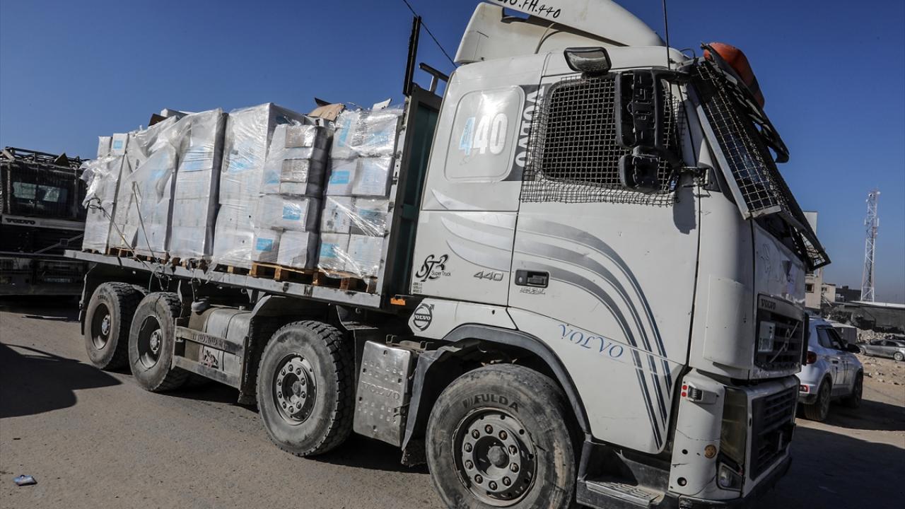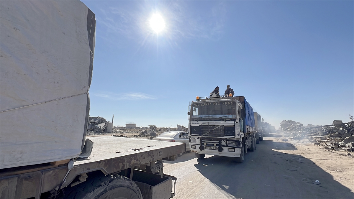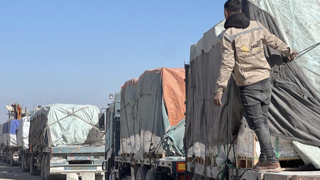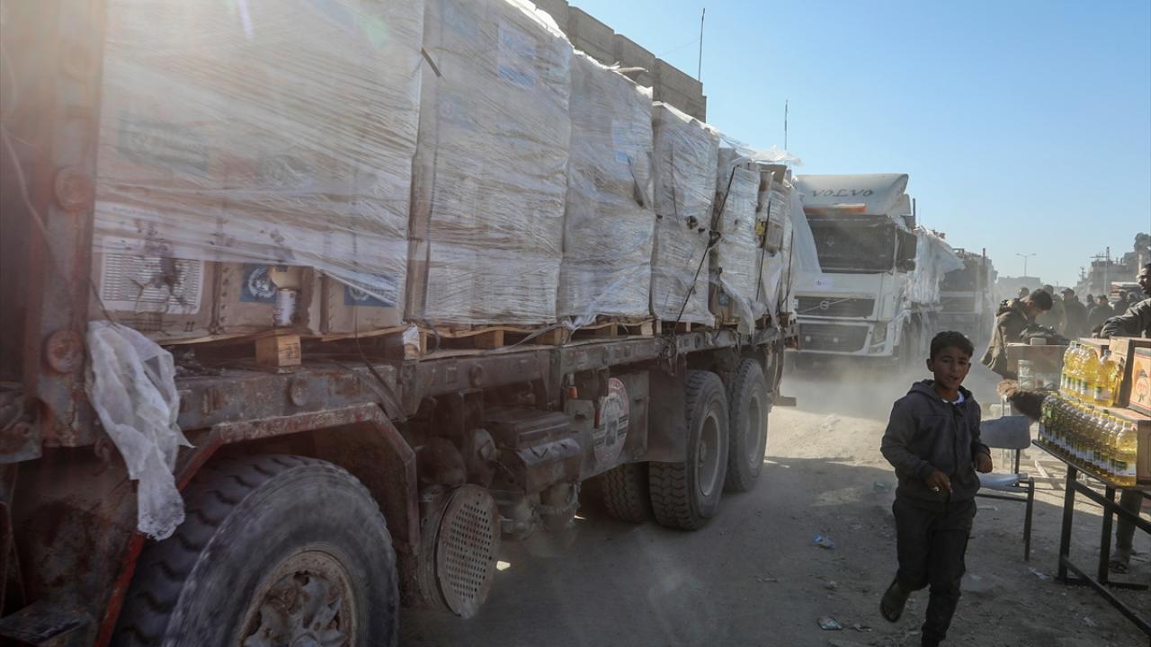 Hamas ile İsrail arasında varılan mutabakatın ardından Gazze'de ateşkesin yürürlüğe girmesiyle yardım tırlarının girişleri 3. gününde de devam ediyor.
