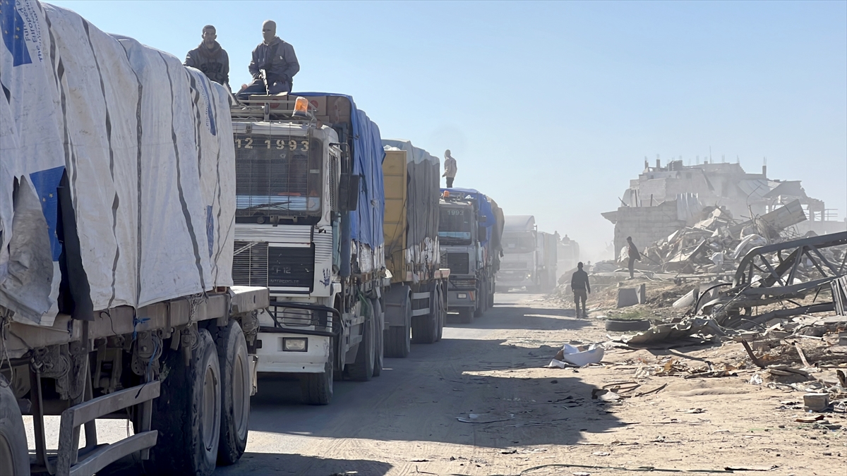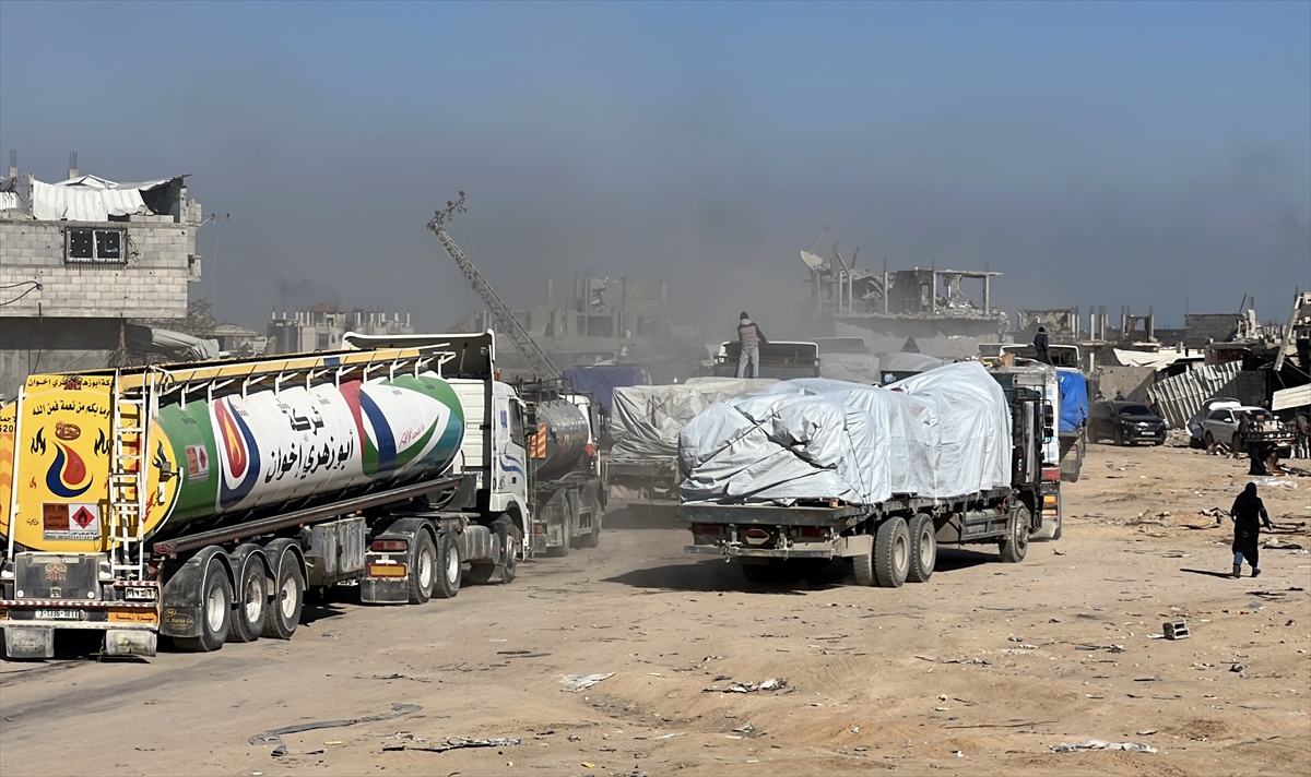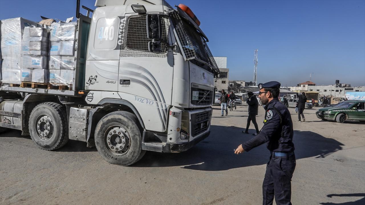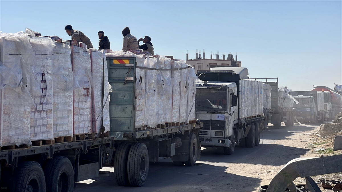 Hamas ile İsrail arasında varılan mutabakatın ardından Gazze'de ateşkesin yürürlüğe girmesiyle yardım tırlarının girişleri 3. gününde de devam ediyor.