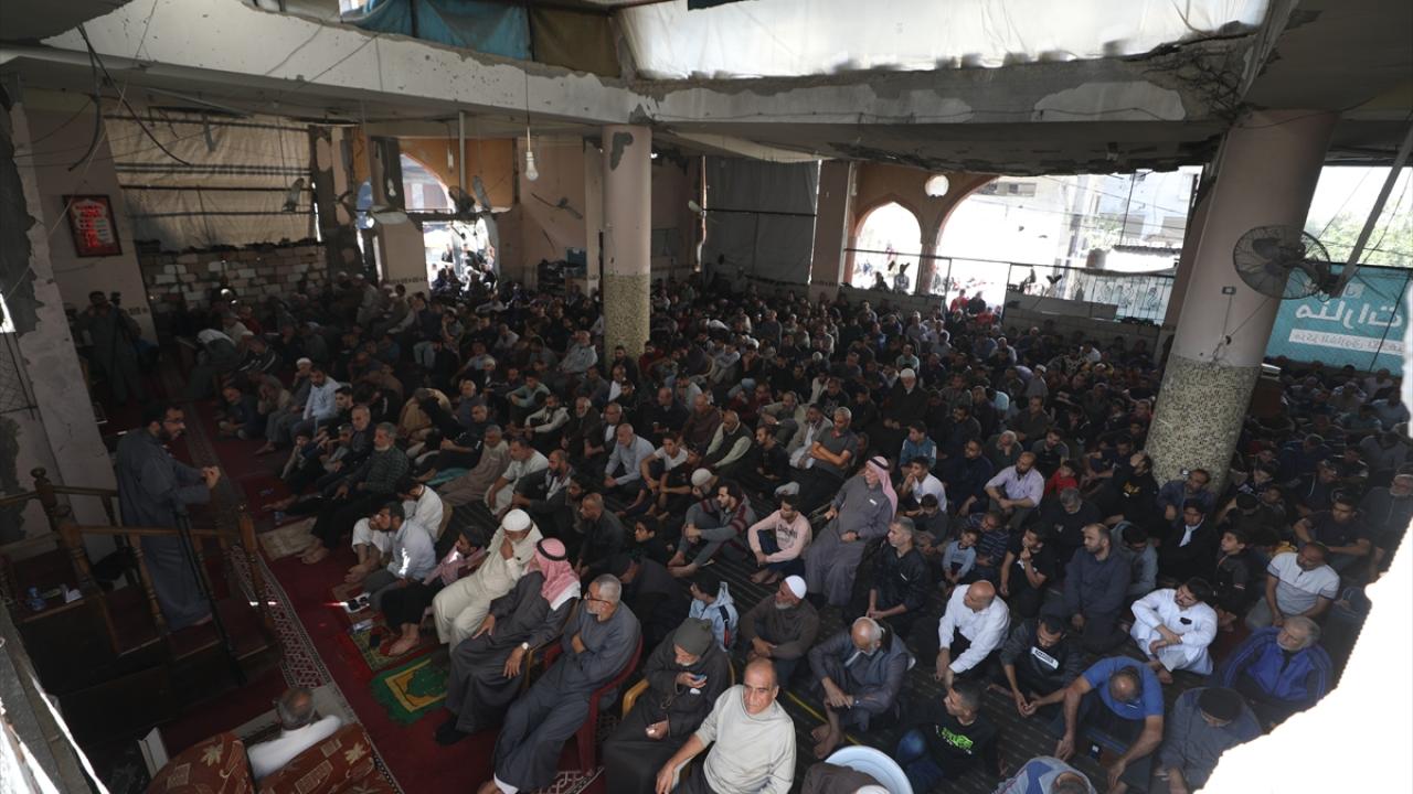 İsrail ordusunun ateşkesin ardından çekildiği Gazze Şeridi'nin orta kesiminde yer alan Nuseyrat Mülteci Kampı’nda cuma namazı kılındı.