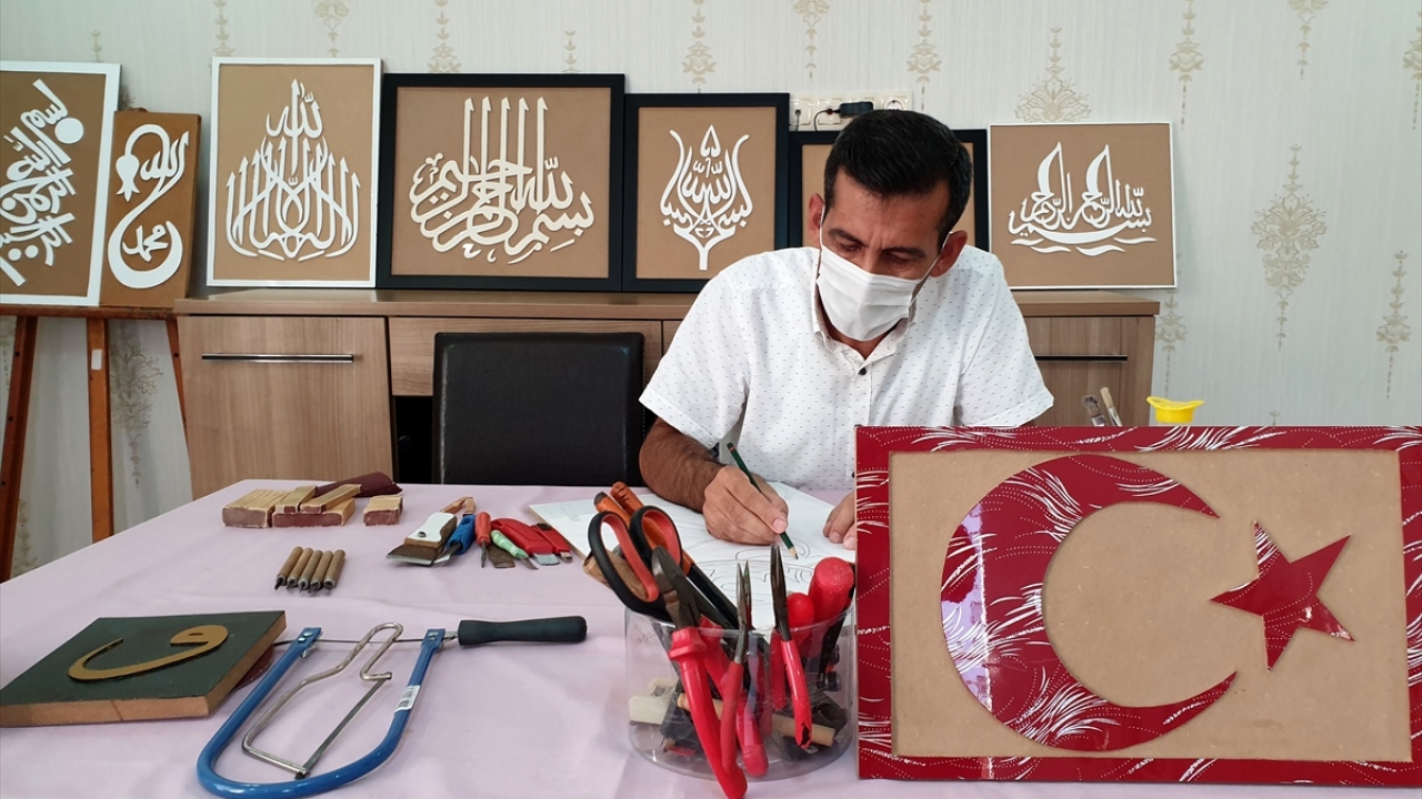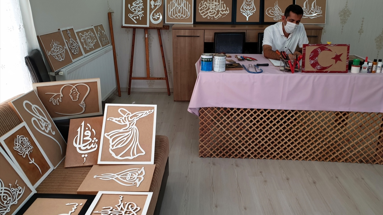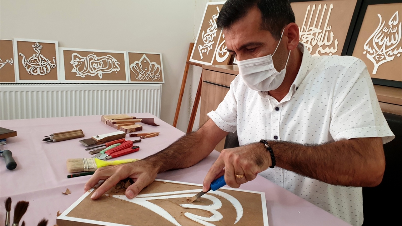 45 yaşındaki Doğan, yeni tip koronavirüs salgını nedeniyle okullarda uzaktan eğitime geçilen dönemi verimli bir şekilde değerlendirmek için internette araştırma yaparken hat ve ahşap oyma sanatına merak saldı.