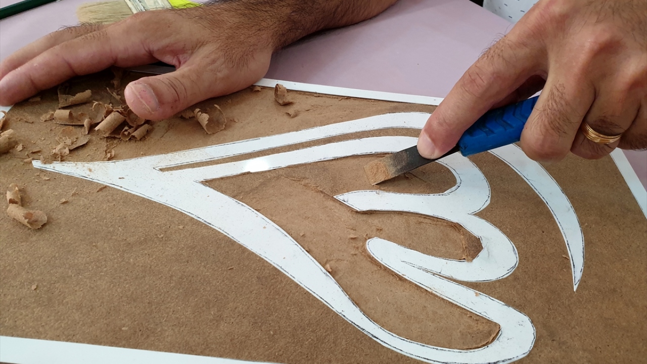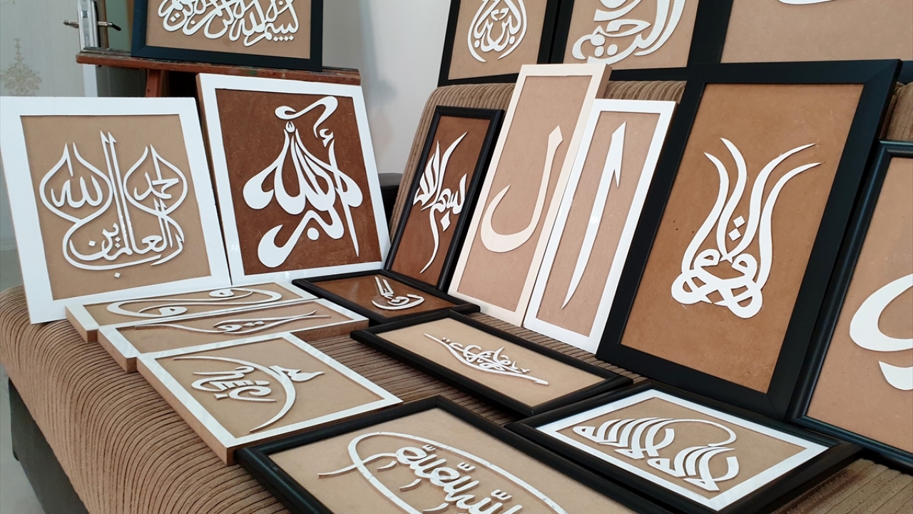 "Daha önce de hat sanatına merakım vardı. Ben bunu yapabilirim dedim ve yapmaya başladım. Marangoz ve mobilyacılardan geri dönüşüme kazandırabileceğimiz atık malzemeleri topladım. Atık demir parçalarından yaptığım aletlerle tahta ve ahşap parçalarına şekil vererek kabartmalı hat sanatı eserler ortaya çıkardım. Keyif alarak 100`e yakın eser yaptım."
