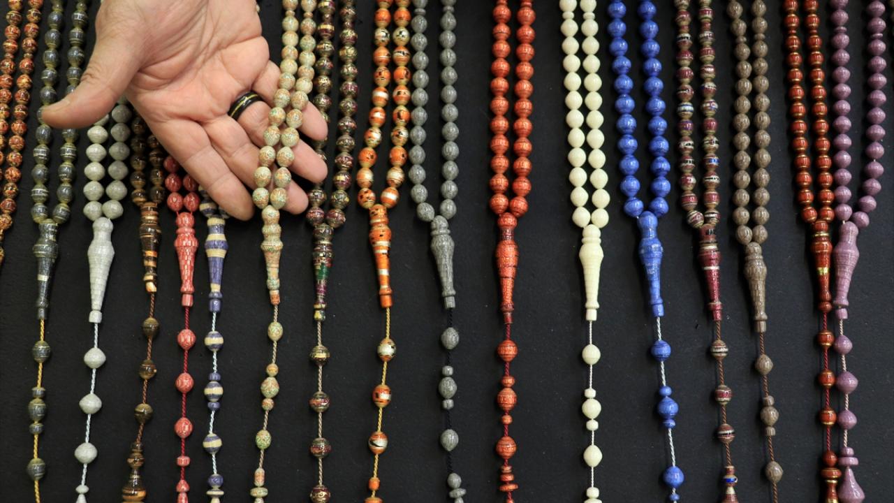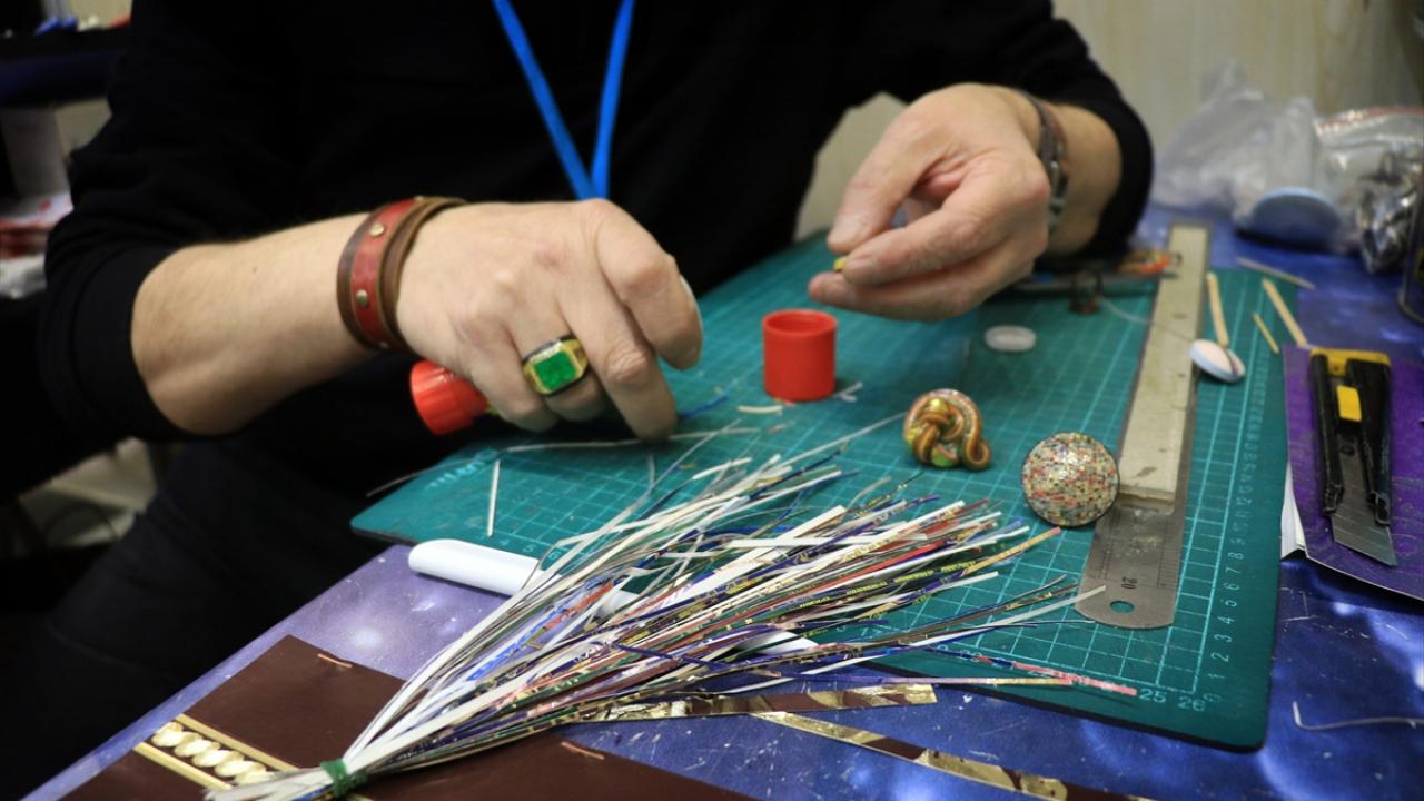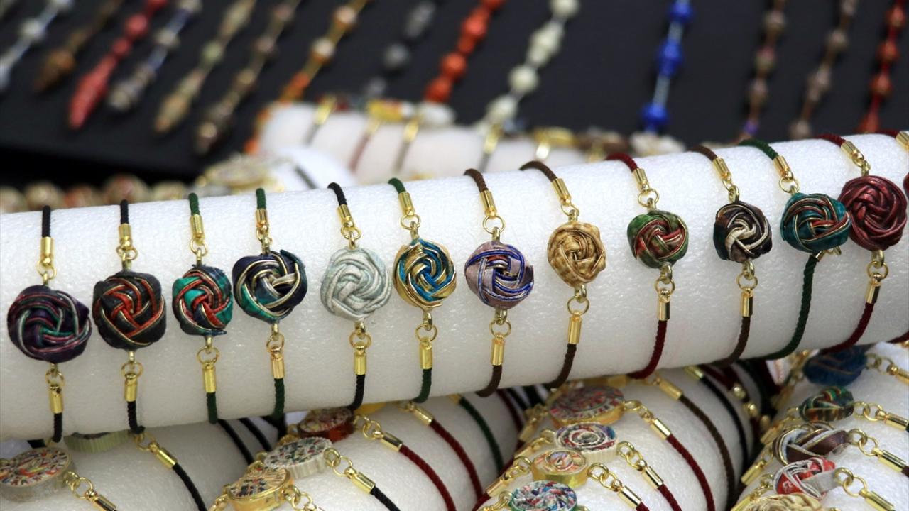 Atık kağıtları kendi renk ve desenlerinden faydalanarak takı ve aksesuara dönüştüren Ali Rıza Kart, 'Teriha' adını verdiği sanatıyla 50 bine yakın yüzük, kolye, tespih, bileklik üretti.