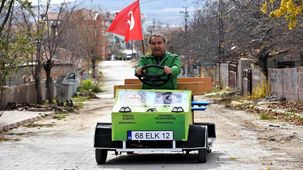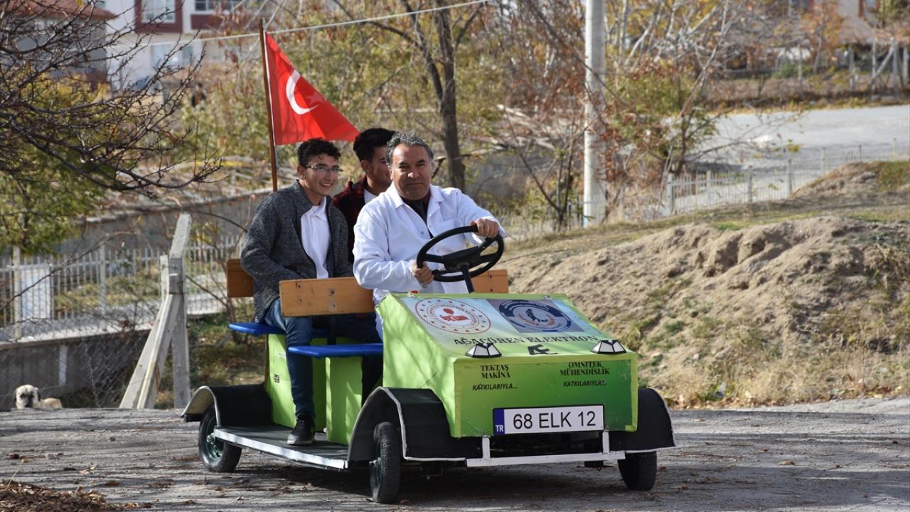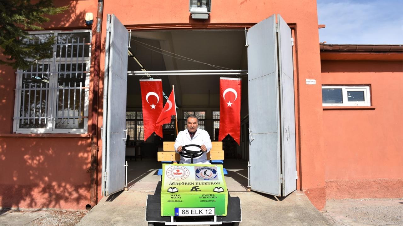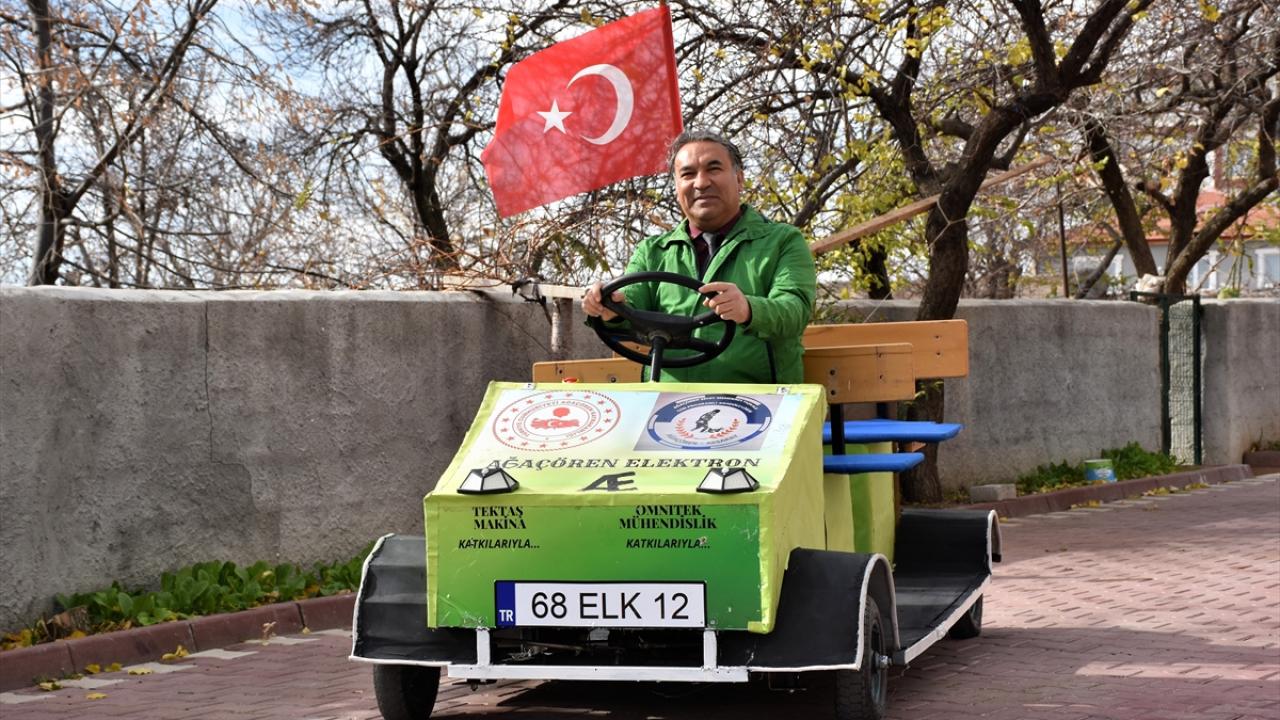 Aksaray'ın Ağaçören ilçesinde bir lisede görev yapan elektrik öğretmeni Mahmut Sinen, hurdaya ayrılan okul sıraları, el arabası tekerleği ve diğer malzemeleri kullanarak öğrencilerinin de yardımıyla 3 vitesli elektrikli araç üretti.