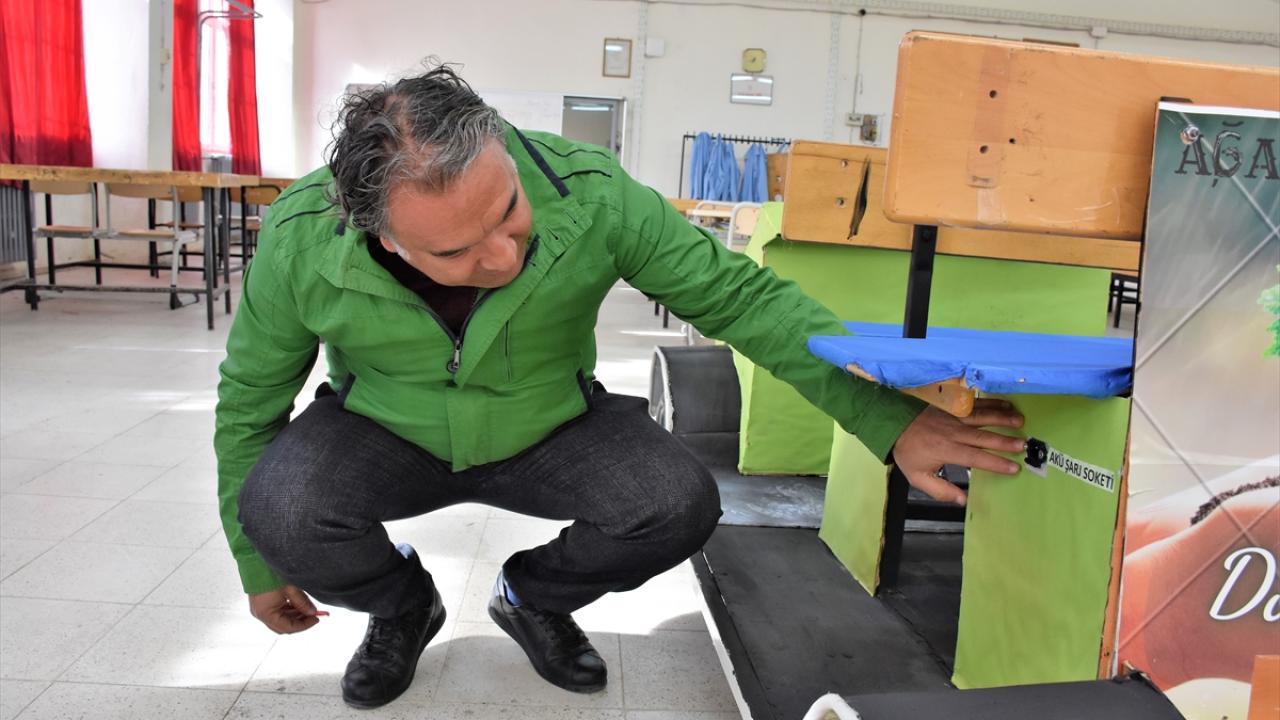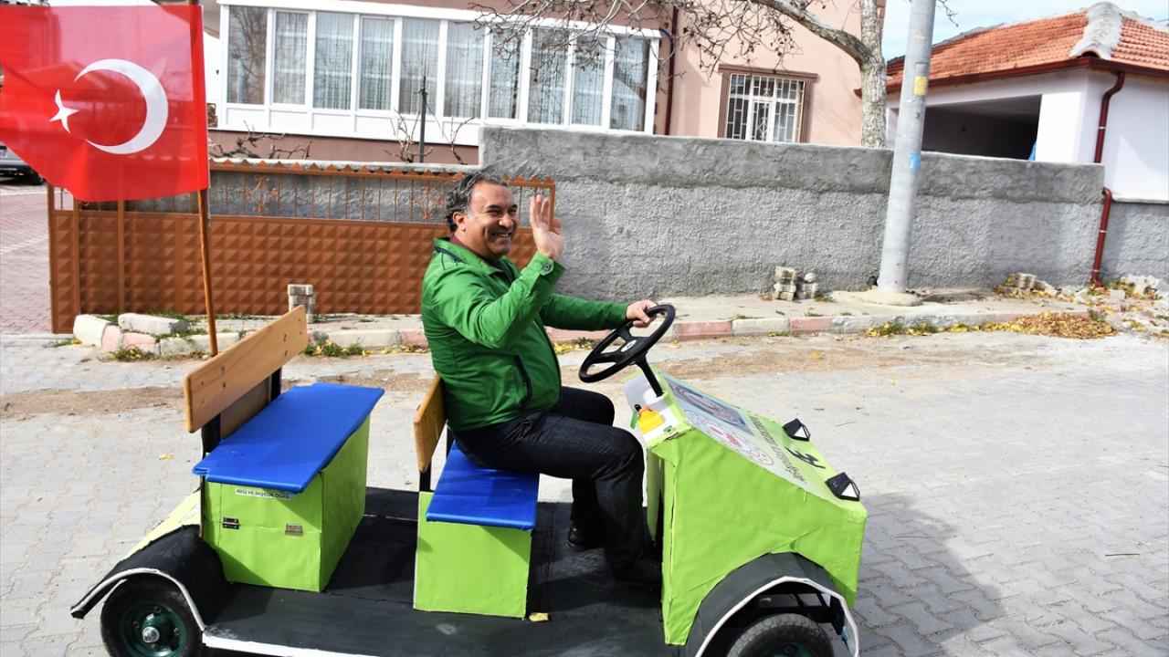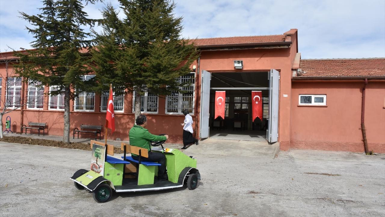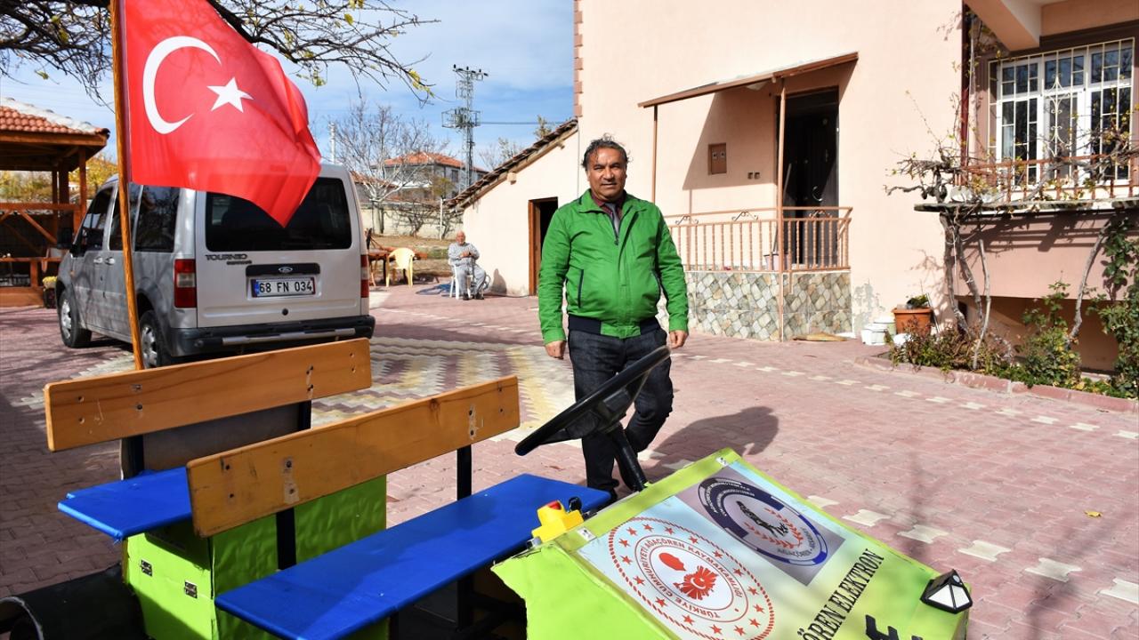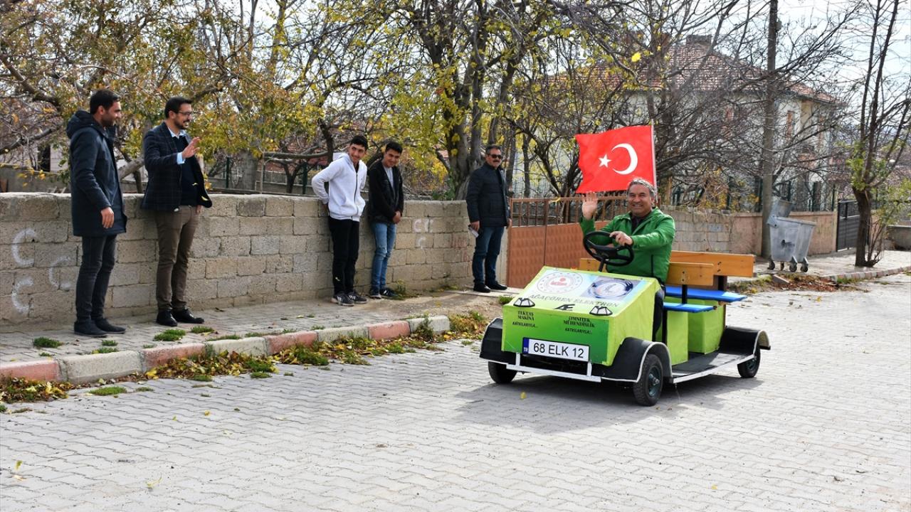 Aksaray'ın Ağaçören ilçesinde bir lisede görev yapan elektrik öğretmeni Mahmut Sinen, hurdaya ayrılan okul sıraları, el arabası tekerleği ve diğer malzemeleri kullanarak öğrencilerinin de yardımıyla 3 vitesli elektrikli araç üretti.