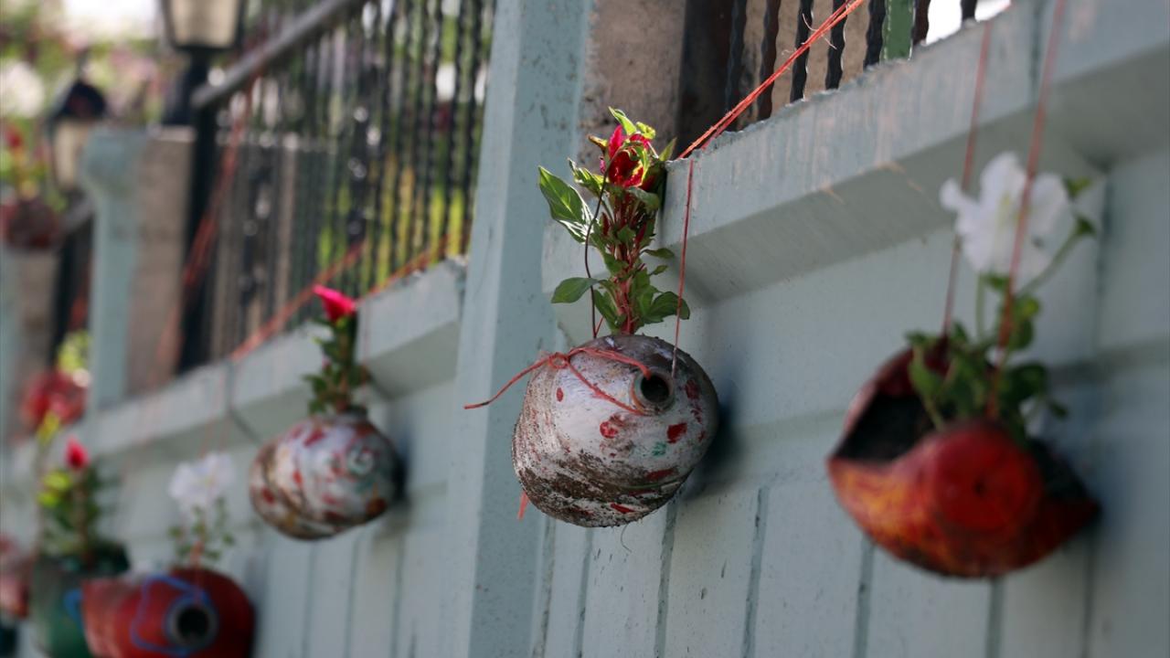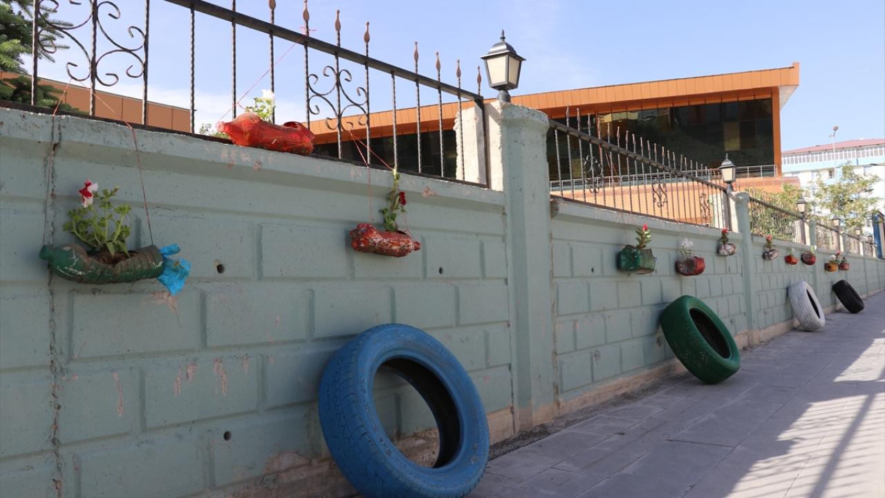 Gönüllüler, boyayıp rengarenk hale getirdikleri atık malzemelerin içine toprak doldurup çeşitli çiçekler ekip şehrin farklı noktalara bırakıyor.