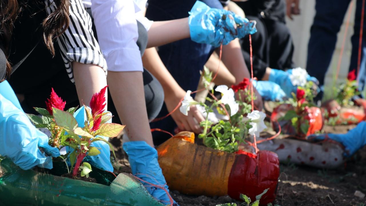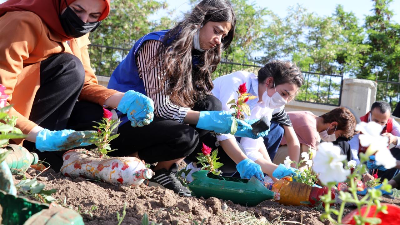 Gönüllülerden Zelal Karakuş ise çöpten topladıkları pet şişelere çiçek dikip farklı bir görüntü ortaya çıkardıkları için mutlu olduklarını dile getirdi.