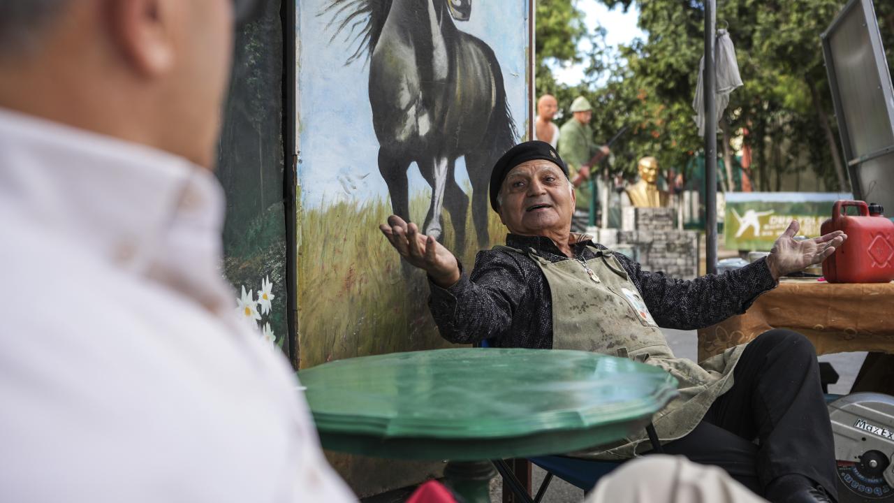 Aile ve Sosyal Hizmetler Bakanlığına bağlı Bahçelievler Huzurevi Yaşlı Bakım ve Rehabilitasyon Merkezi'nin sakinlerinden 80 yaşındaki Özcan Çelen, eski çamaşır makinesi ve tekerlekli sandalye gibi atık eşyaları sanata dönüştürerek kurumun bahçesini heykeller, tablolar ve yapay havuzlarla donattı.