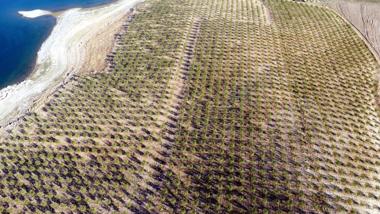 Yörede yaşayan üreticiler baraj gölü çevresinde atıl durumda olan kendilerine ait arazileri ve Hazine`ye ait kullanılmayan kiraladıkları arazileri diktikleri fidanlarla badem bahçesine dönüştürdü.