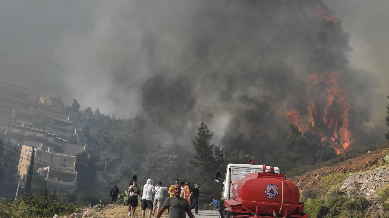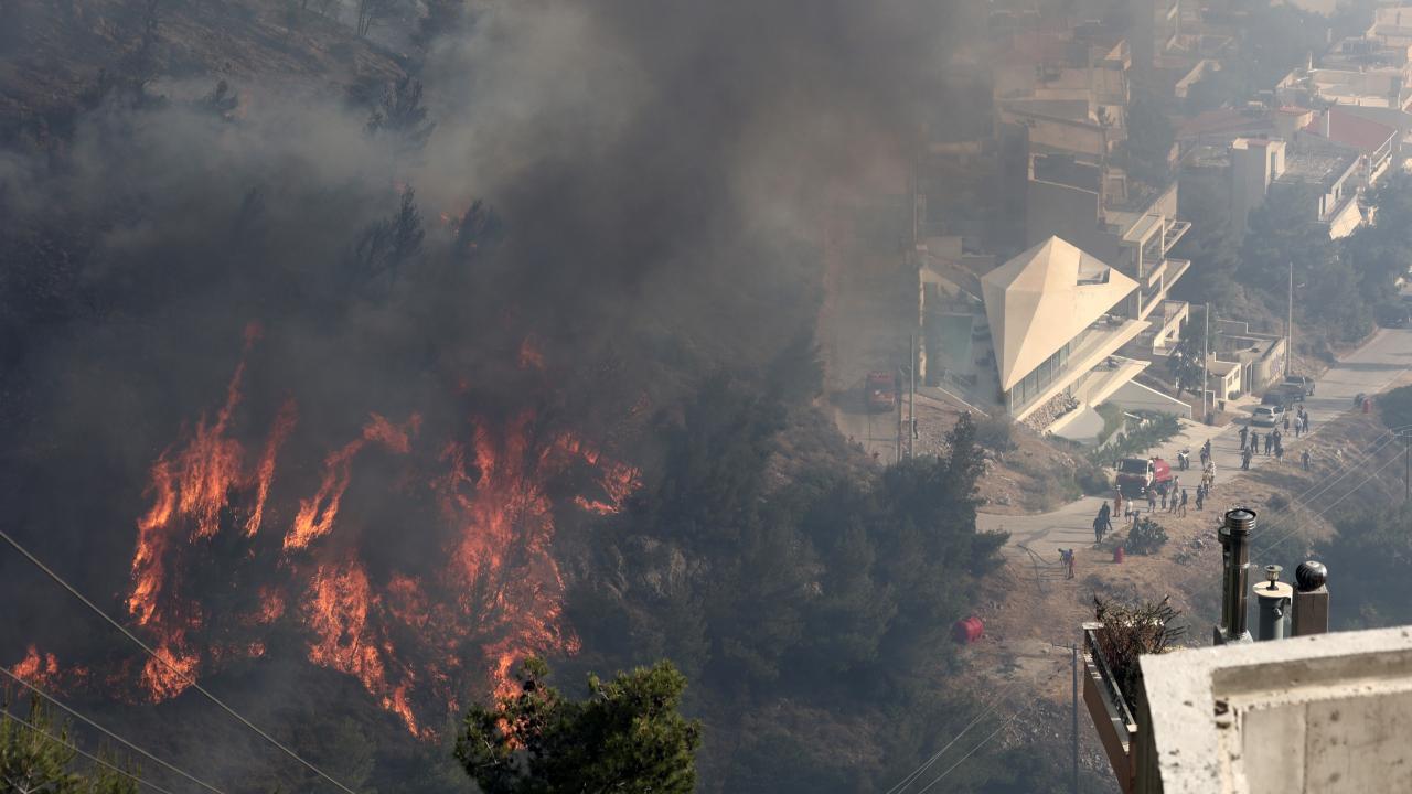 Yunan Devlet Ajansı AMNA`nın haberine göre, Ano Glifada semtinde çıkan yangın, çevre semtlere de sıçradı.