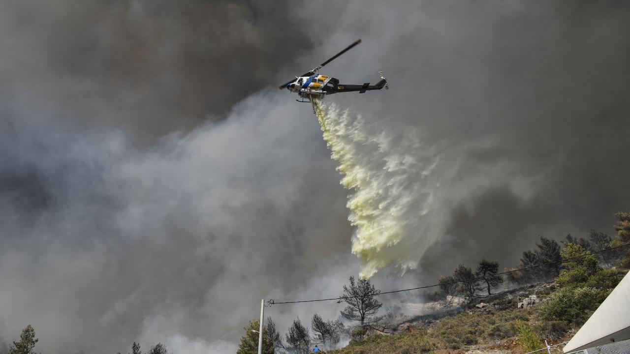 Havadan ve karadan devam eden yangın söndürme çalışmaları, şiddetli rüzgar nedeniyle zor şartlarda devam ediyor.