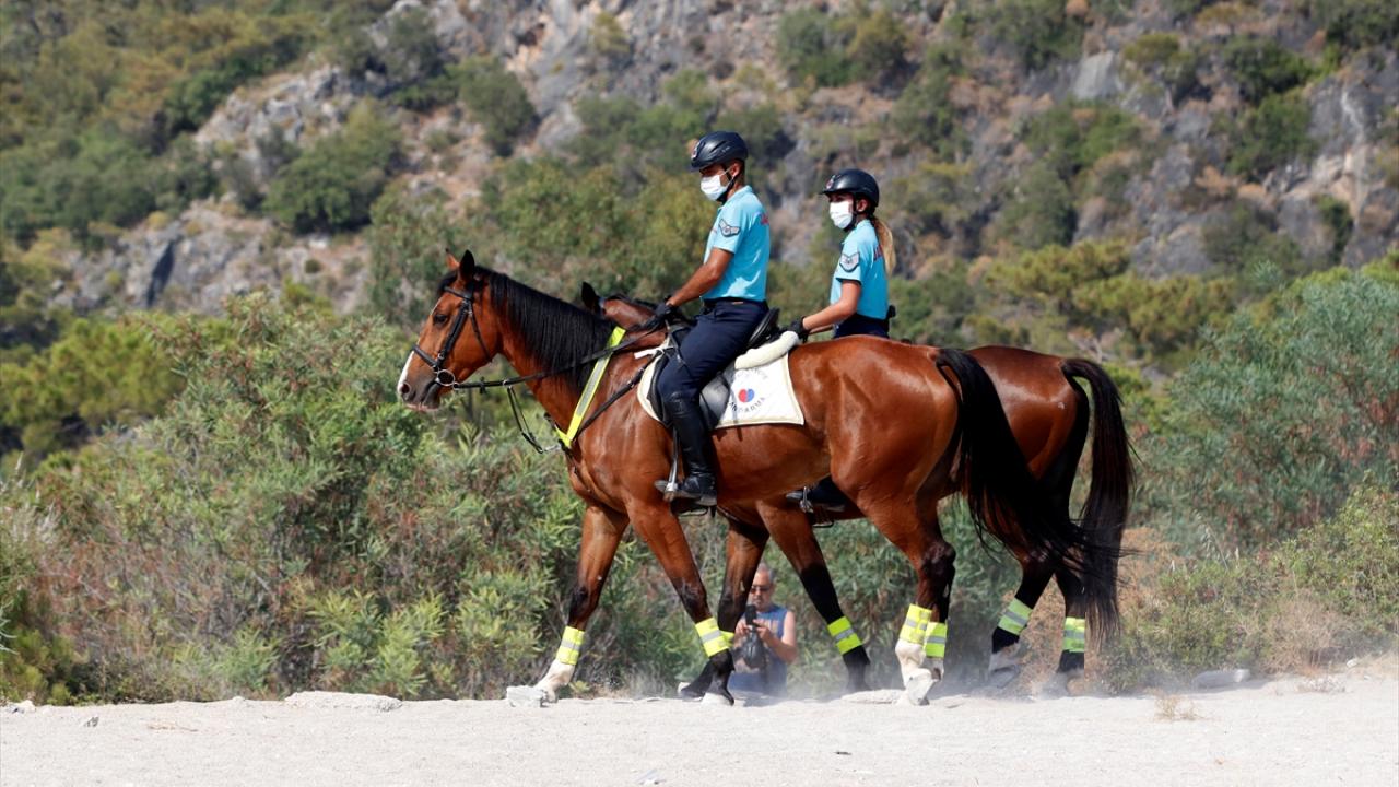 Ölüdeniz Jandarma Karakol Komutanlığı bünyesinde oluşturulan geçici at merkezinde kalan süvariler, Ölüdeniz Mahallesi`nde Likya Yolu, Kayaköy, Belcekız Plajı ve Kumburnu plajlarında devriye yapacak.