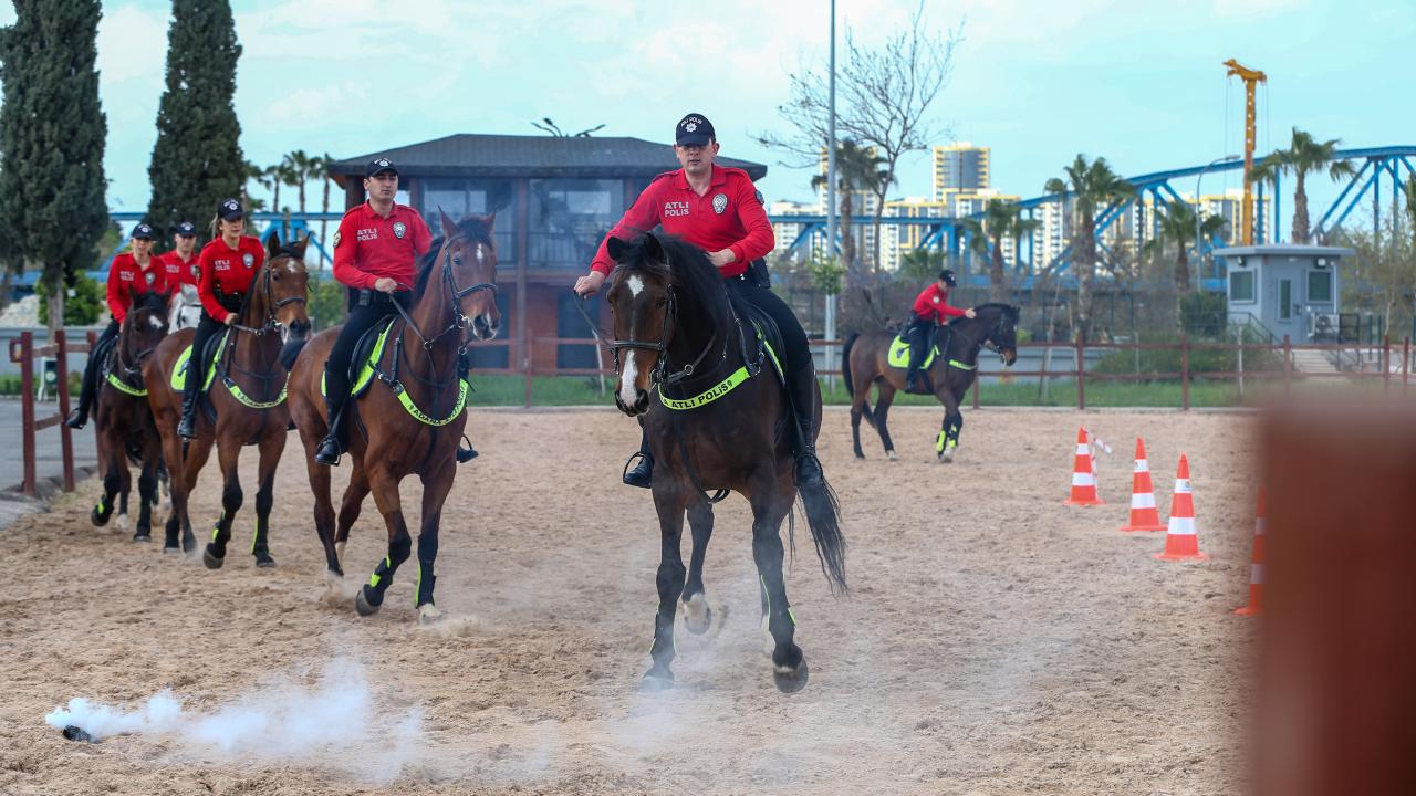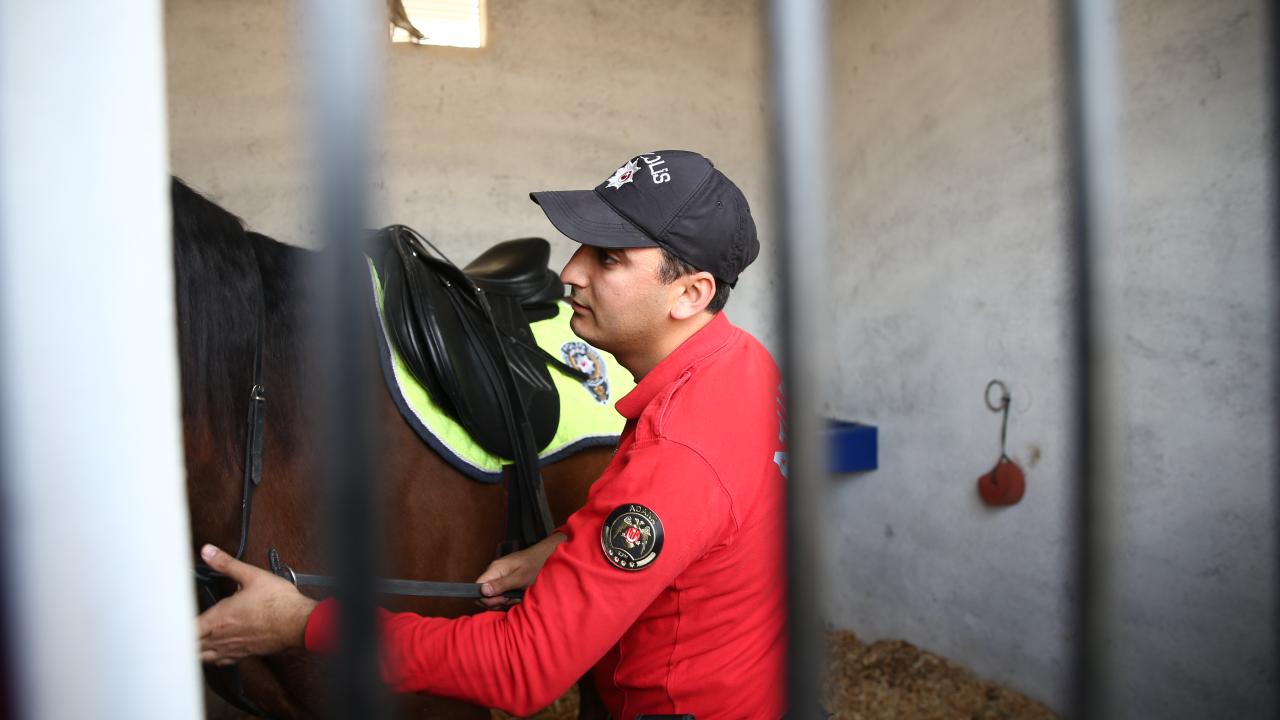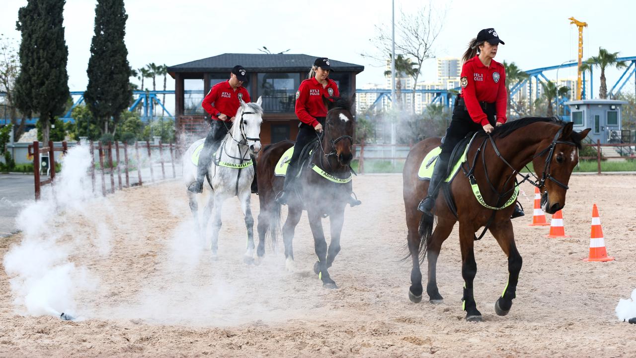 Adana'da toplumsal olaylara müdahale ve halkın yoğun olduğu sosyal alanlarda güvenliğin sağlanması için oluşturulan atlı polis birliği, düzenli eğitimlerden geçerek göreve hazırlanıyor.