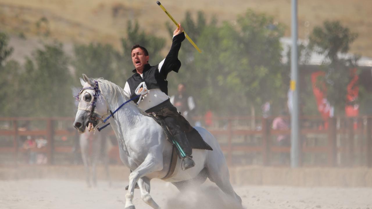 Bitlis'in Ahlat ilçesinde, Malazgirt Zaferi'nin 950. yıldönümü kutlamaları kapsamında düzenlenen atlı spor oyunları büyük ilgi görüyor.