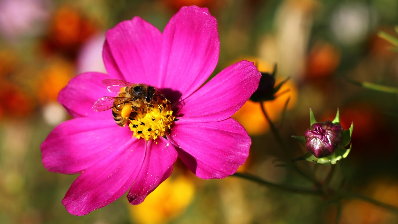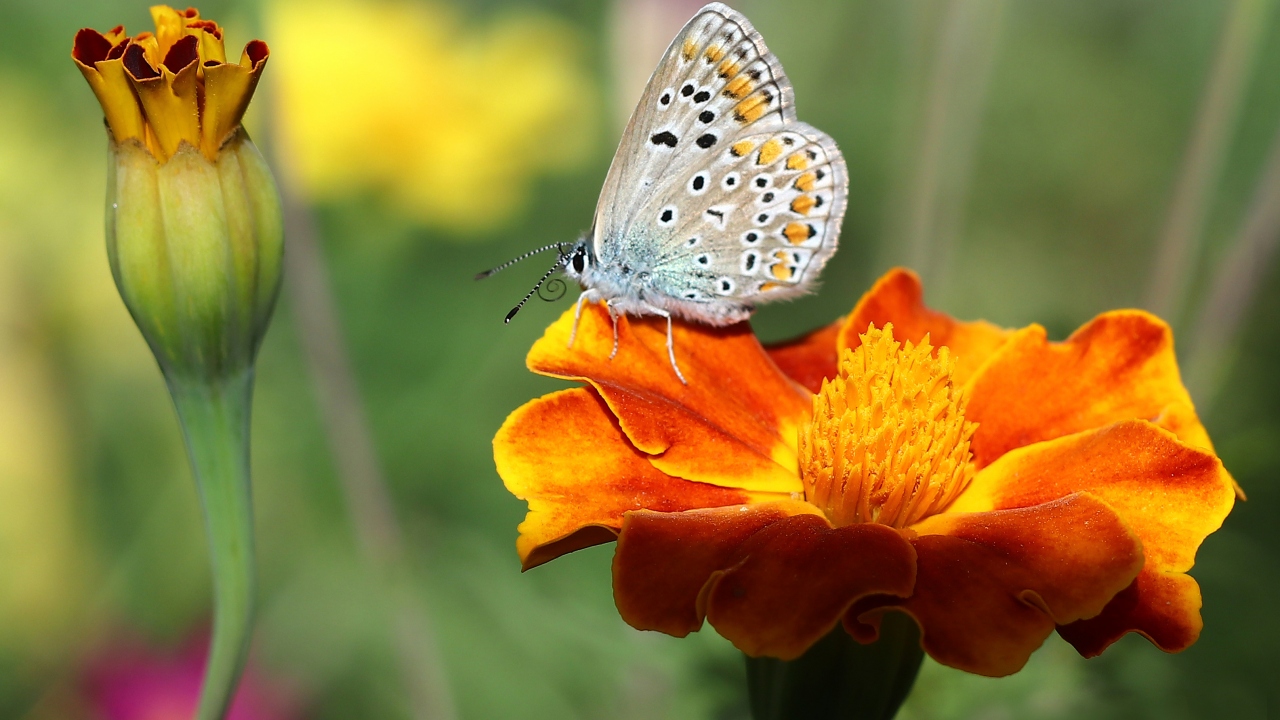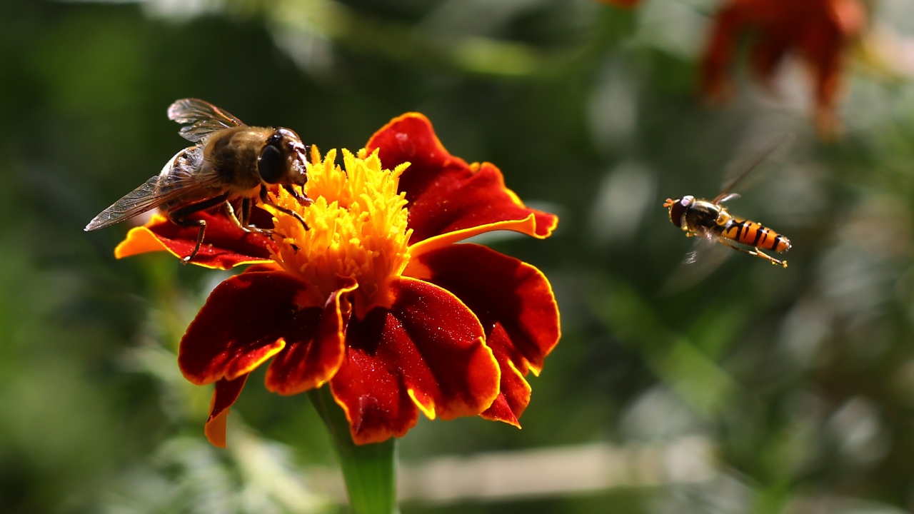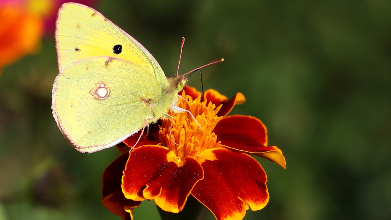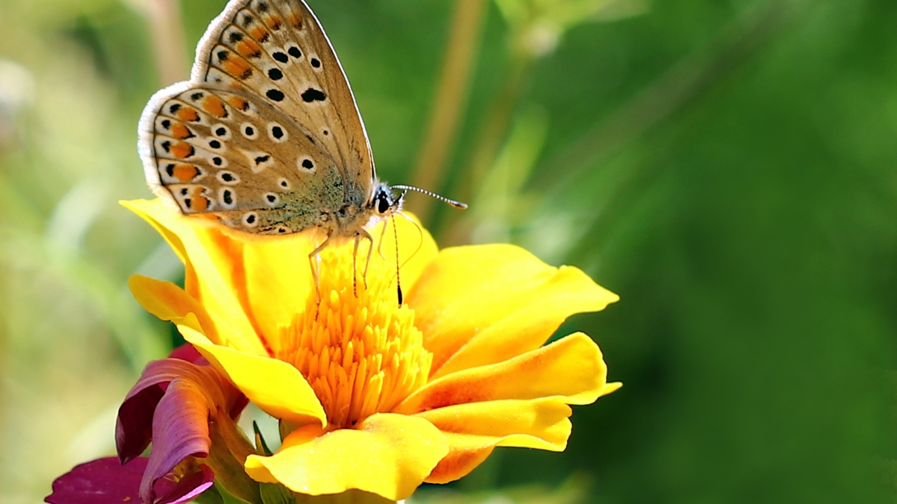Atmaca güvesi hortumuyla çiçeklerdeki poleni çekiyor