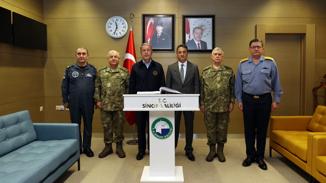 Sinop Havalimanı’nda Vali Erol Karaömeroğlu ve diğer yetkililer tarafından karşılanan Akar, buradan limana hareket etti.