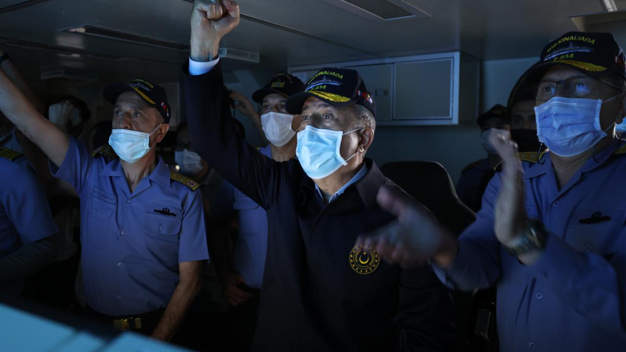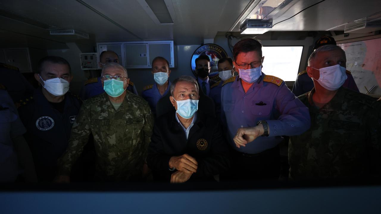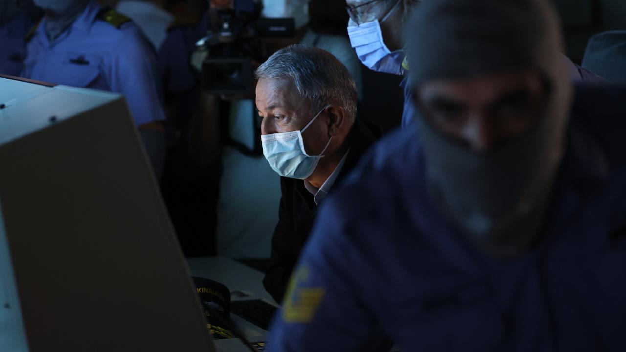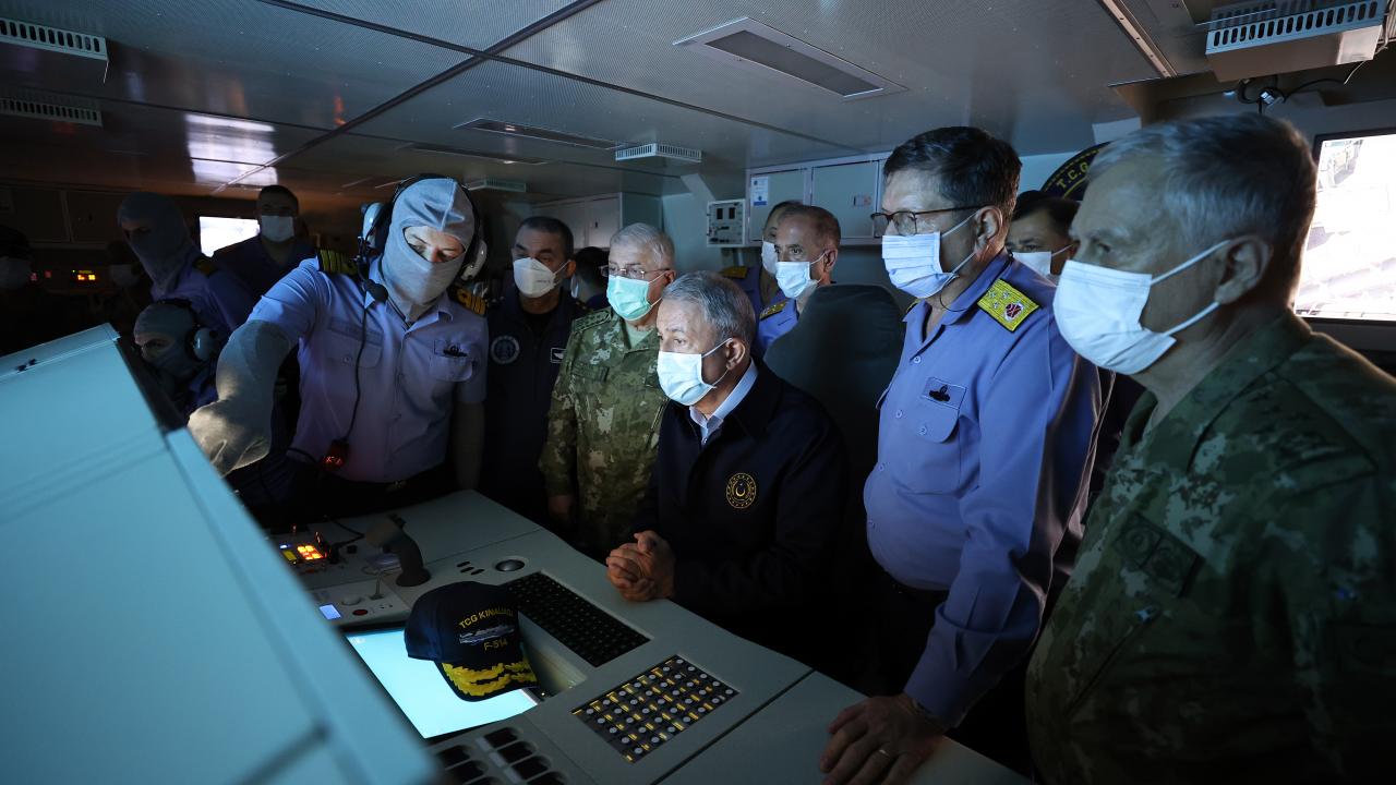 Brifingin ardından geminin savaş harekat merkezine geçen Akar ve komutanlar buradan Deniz Kuvvetleri Komutanlığının özel atışını takip etti.