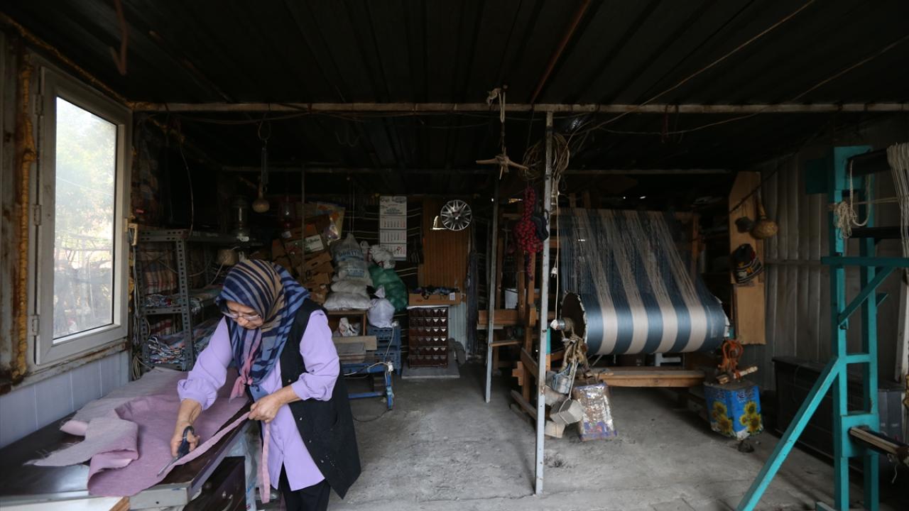 Eşiyle atölyede kilim dokuyan Dağdaş, yaptığı ürünleri satarak gelir elde ediyor.