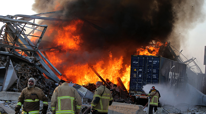 Lübnan resmi ajansı LNA, Beyrut Limanı`nda patlayıcı maddelerin bulunduğu 12 numaralı depoda yangın çıktığını; ardından patlamaların meydana geldiği bilgisini paylaştı.