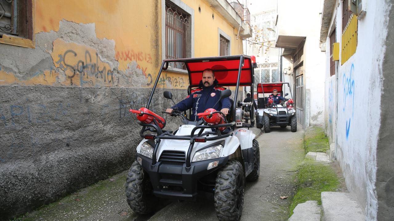 Hatay'da tarihi Antakya evlerinin olduğu dar sokaklar ve sarp arazilerdeki yangınlara ilk müdahale, gerekli ekipmanla donatılan ATV araçlarını kullanan itfaiye ekiplerince yapılıyor.