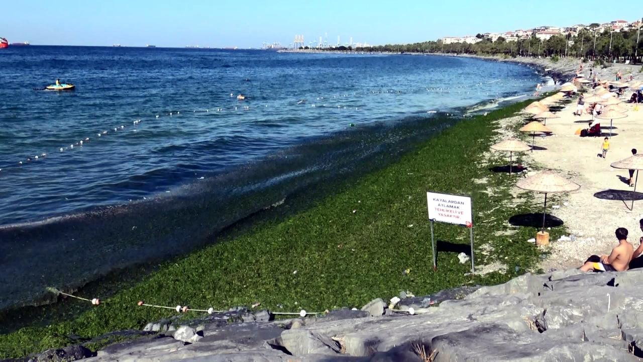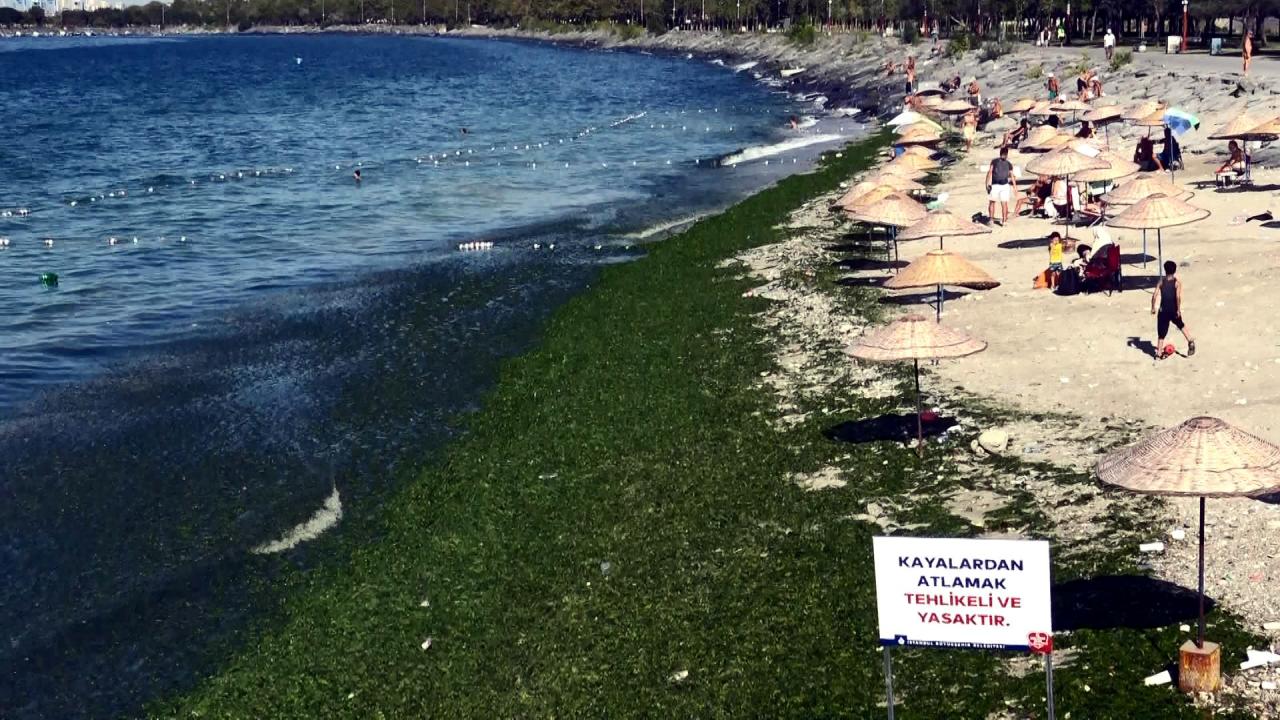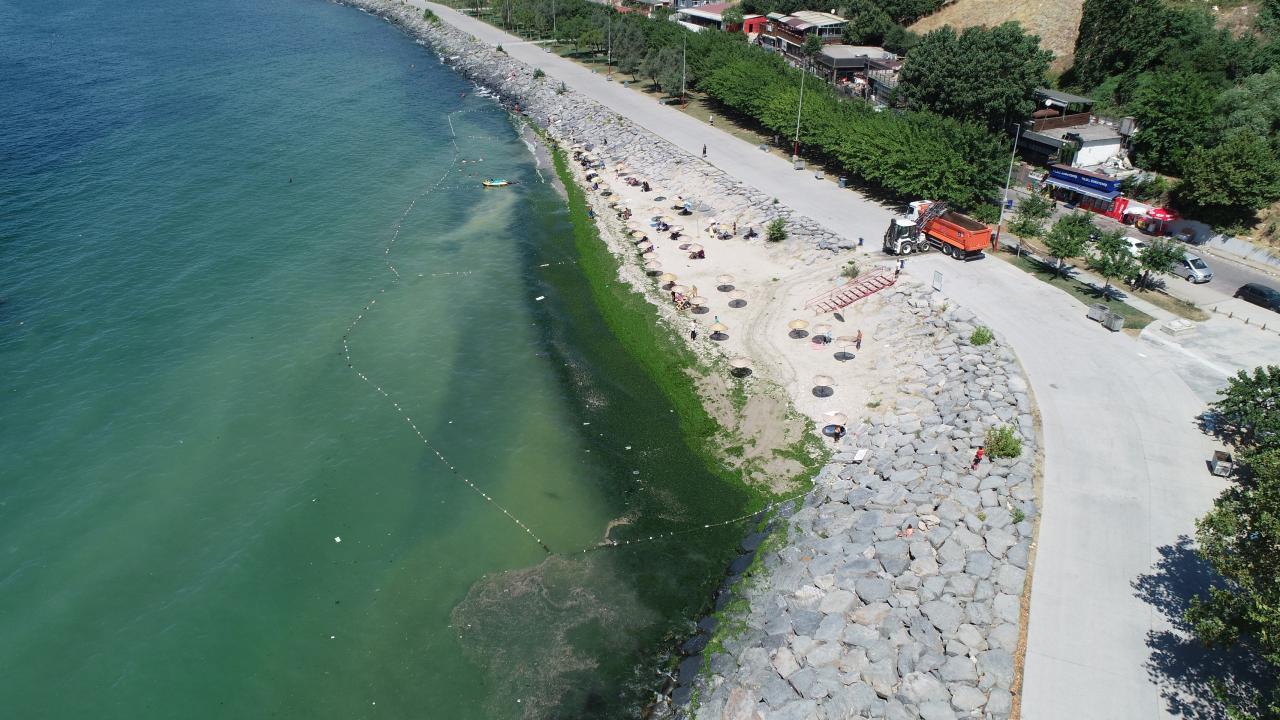 Sahili kaplayan yosun havadan da görüntülendi.