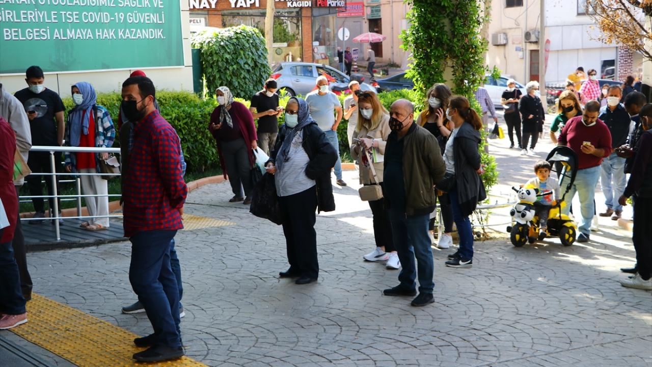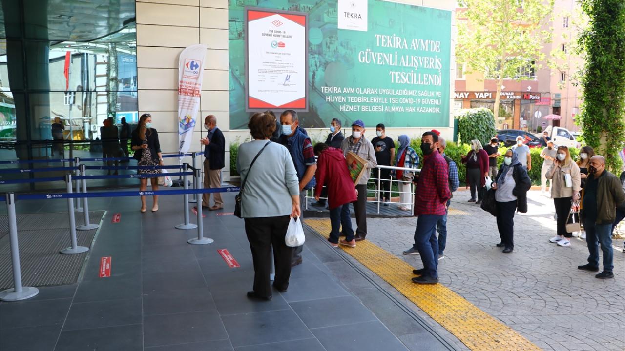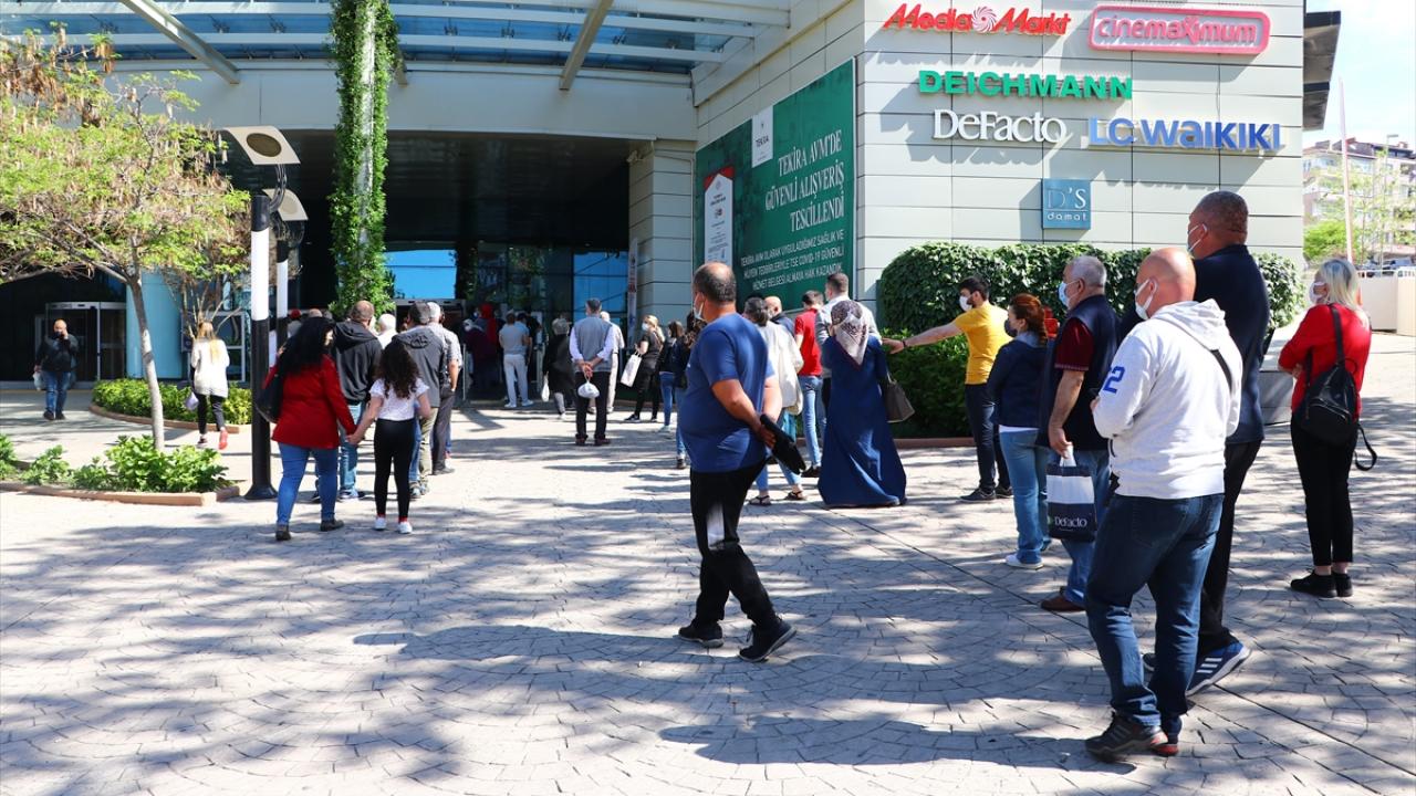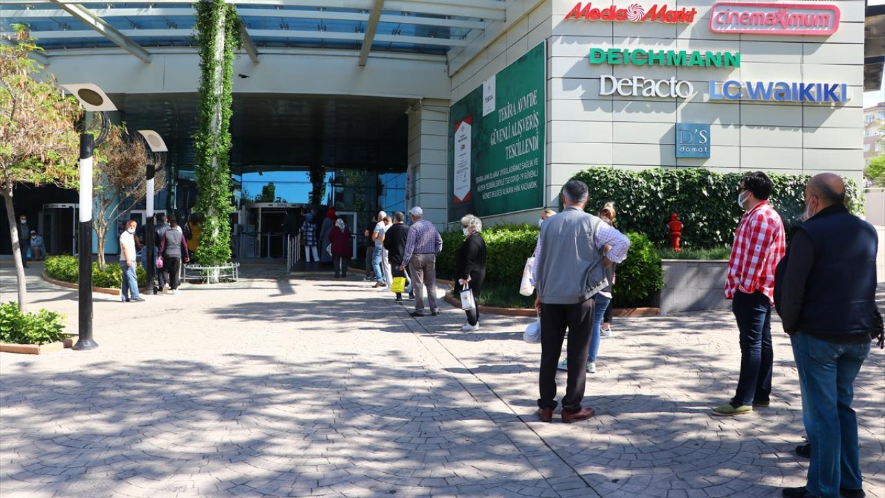 Hazırlıkların tamamlanmasının ardından AVM`ler müşterilerine kapılarını açtı, girişlerde ateş ölçümü ve HES kodu kontrolü nedeniyle kapılarda kuyruk oluştu.