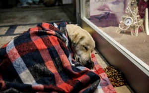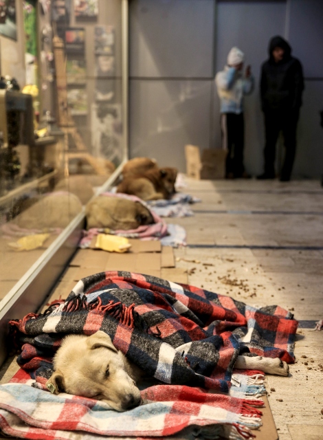 İstanbul Bakırköy'de bir alışveriş merkezinin girişi kar yağışı ve soğuk hava nedeniyle üşüyen hayvanlar için sıcak bir yuva haline geldi. Vatandaşlar sokak köpeklerinin üzerine battaniye örterken yanlarına da mama koydu.