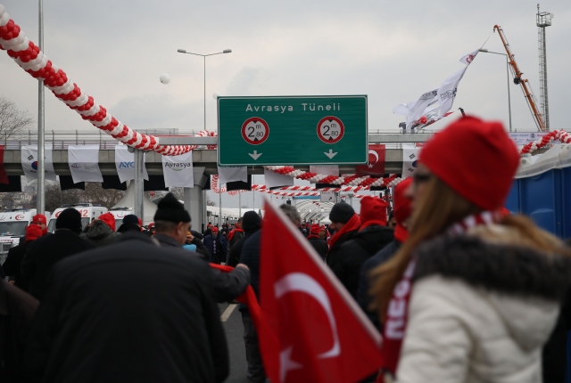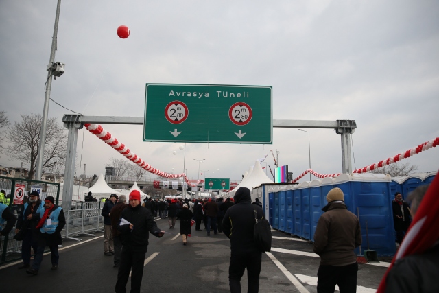 İstanbul'un ulaşım sorununa köklü çözüm üretecek potansiyele sahip, Avrupa ile Asya'yı deniz altından birleştirecek Avrasya Tüneli, düzenlenecek törenle hizmete girecek. Vatandaşlar açılışın yapılacağı alana toplanmaya başladı.