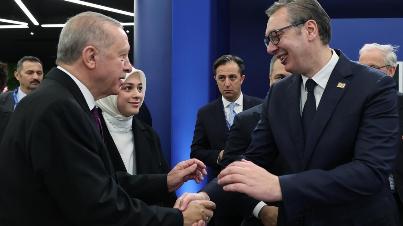 Cumhurbaşkanı Erdoğan, Sırbistan Cumhurbaşkanı Aleksandar Vucic ile selamlaştı.