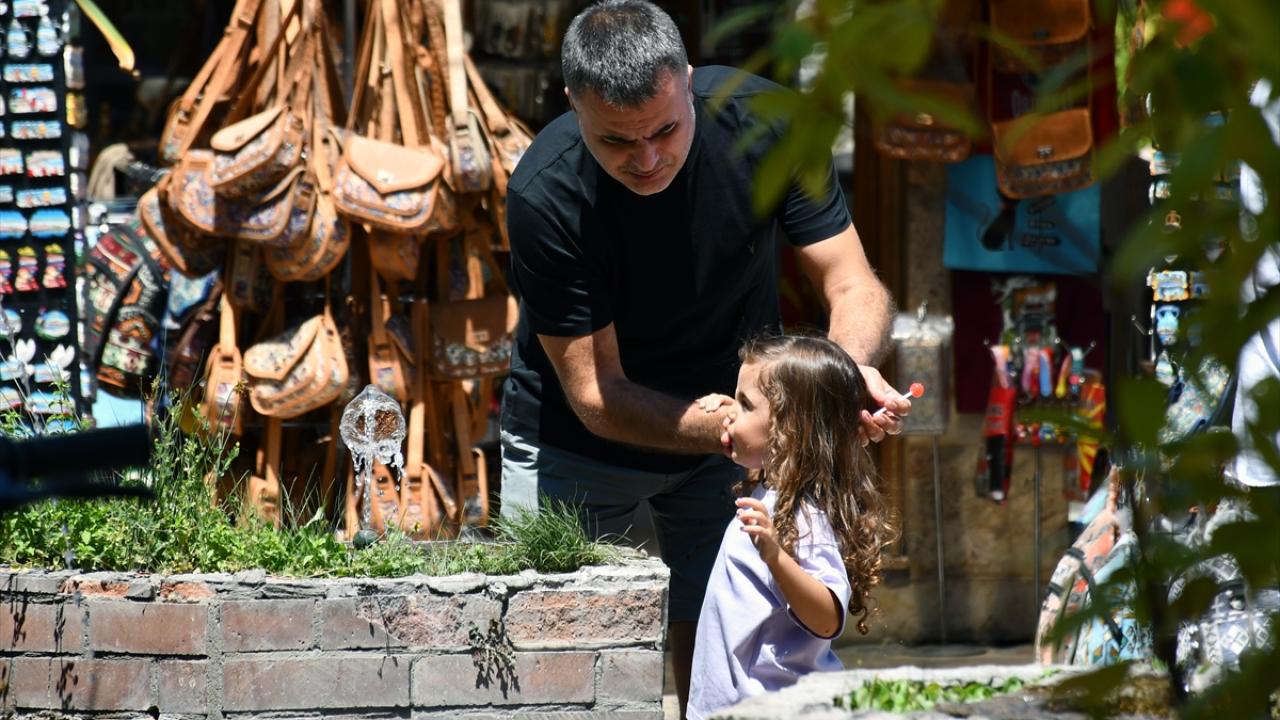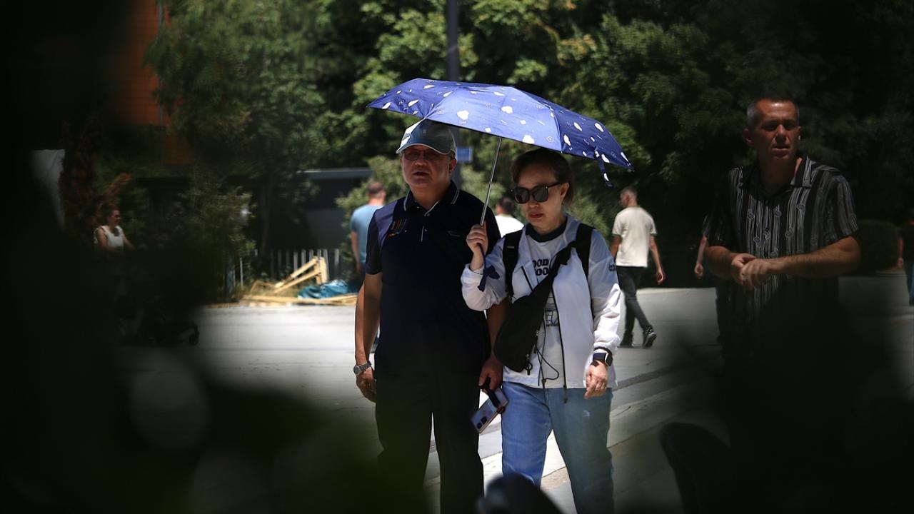 Vatandaşlar ve turistler güneşten korunmak için şapka ve şemsiye kullanırken, bol bol su tükettikleri gözlendi.