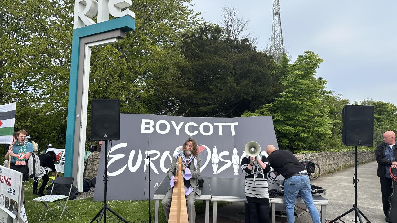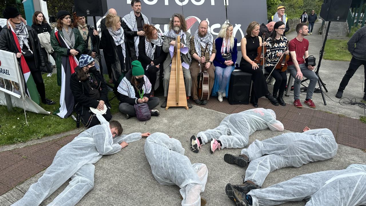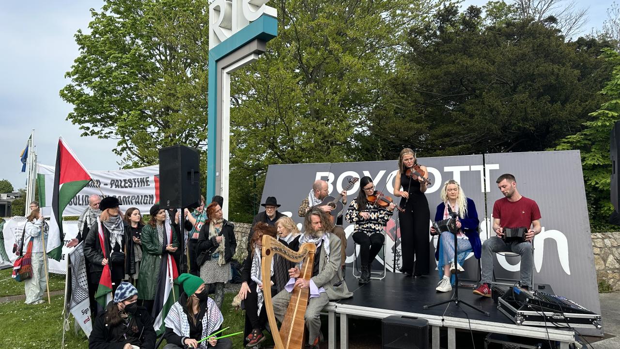 İrlanda Filistin Dayanışma Derneği ve İrlandalı Filistin Sanatçıları tarafından, Dublin`deki İrlanda Radyo Televizyonu (RTE) önünde gösteri düzenlendi.