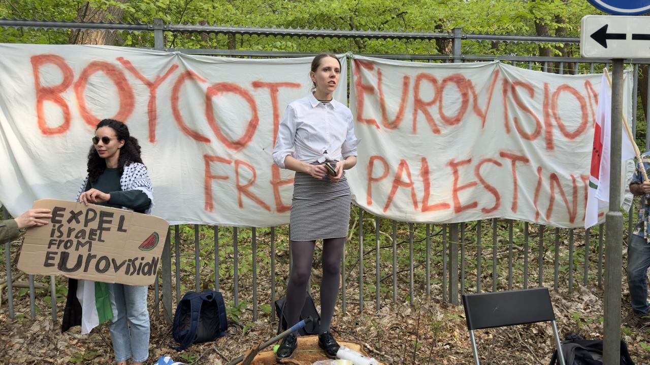 Gösteride, Eurovision Şarkı Yarışması`nın İsrail katıldığı için boykot edilmesi talep edildi.