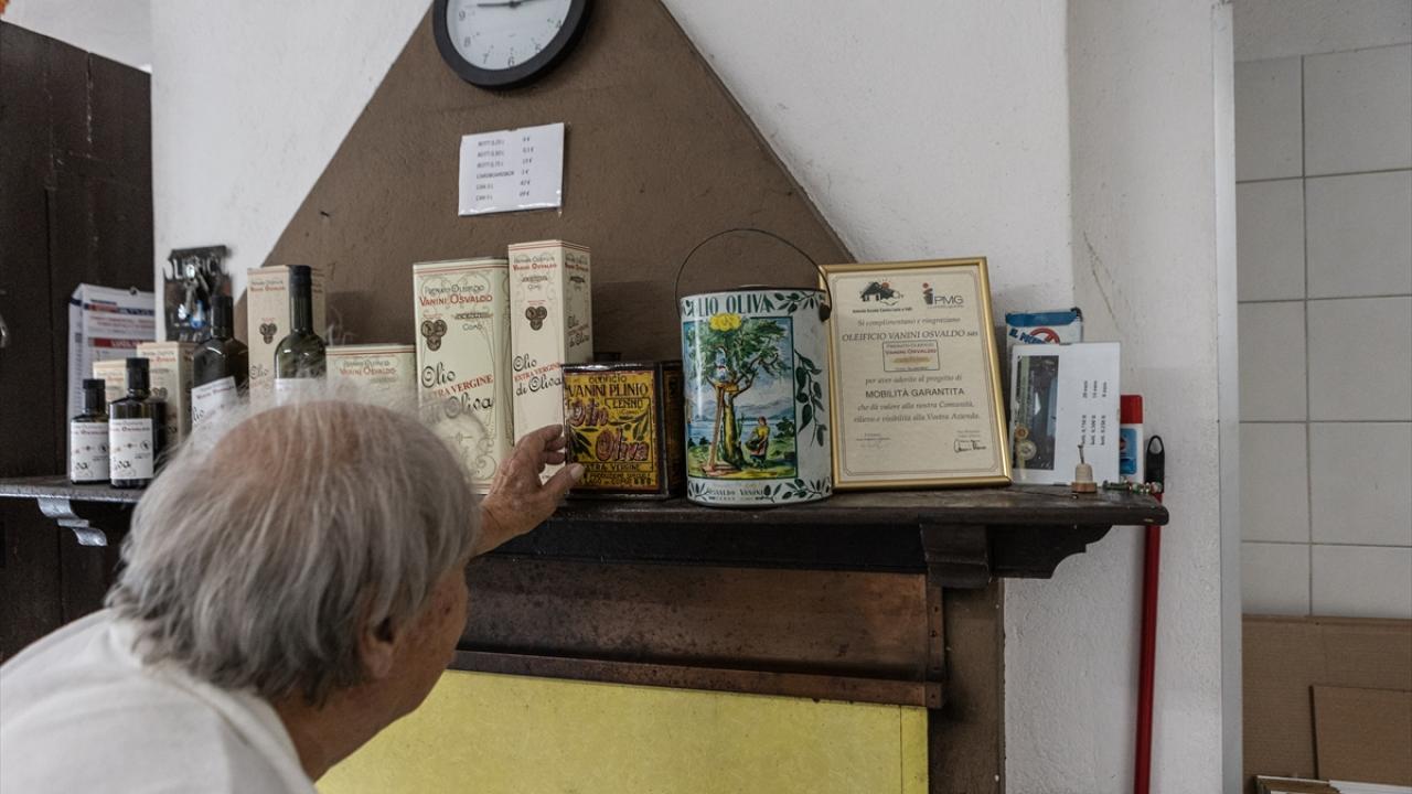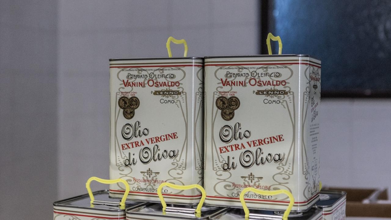 Hasat edilen zeytinler, işletmenin sahibi Piero Vanini ve çalışanlar tarafından Lenno kentindeki atölyede zeytinyağı şişelerini doldurup, etiketlenerek satışa hazır hale getiriliyor.