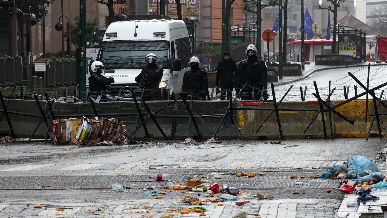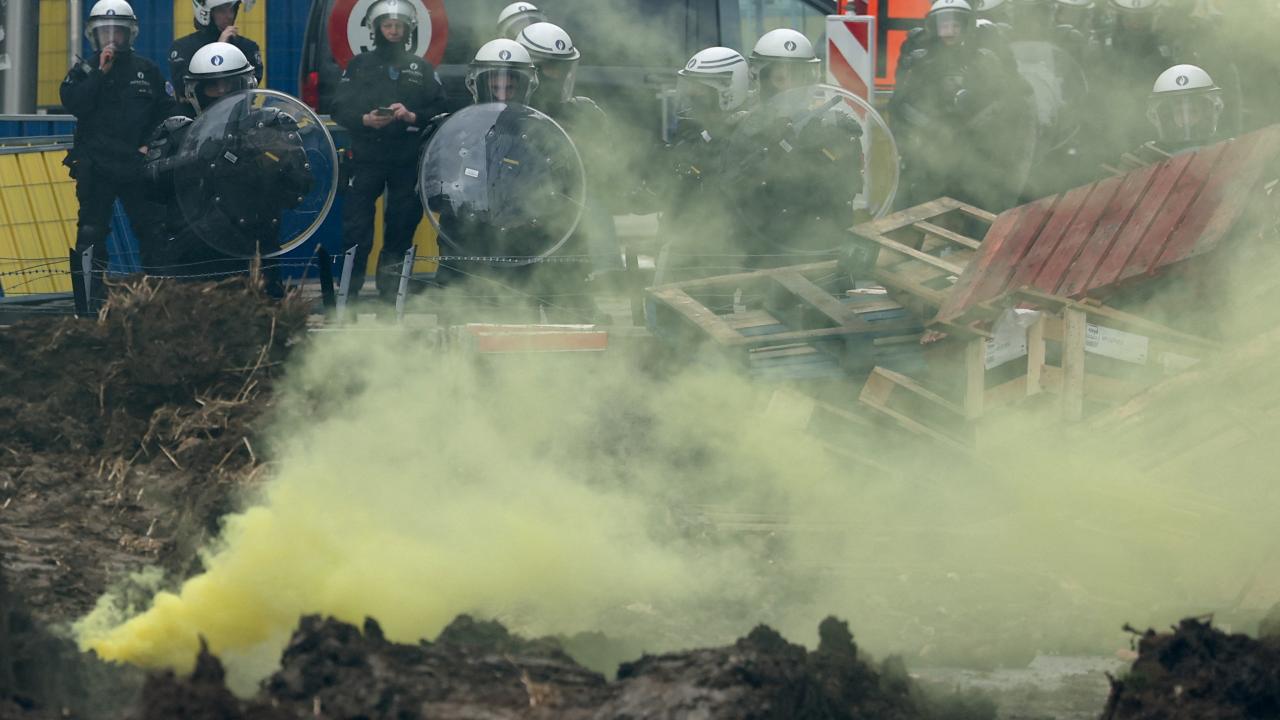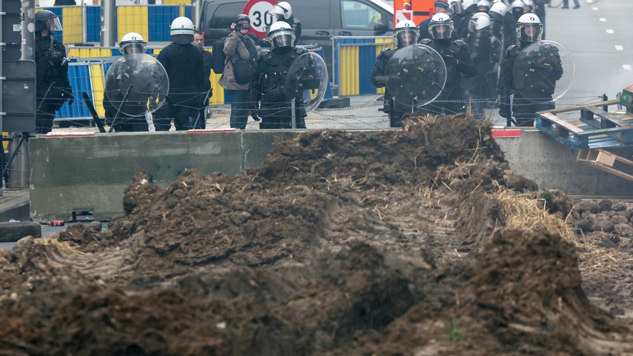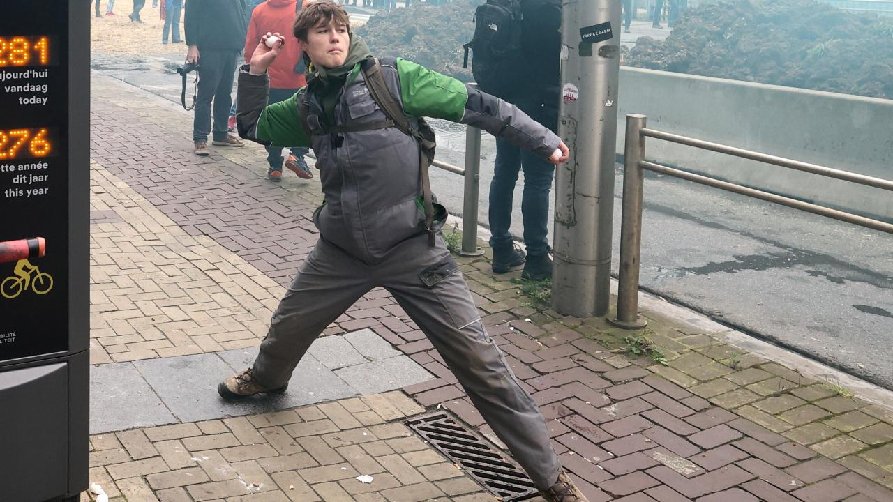 Çevreye sis bombaları, torpil ve havai fişekler atan çiftçiler, AB kurumlarına ve barikat önündeki polislerin üzerine yüzlerce yumurta fırlattı. Çiftçiler, polislerin üzerine sıvı hayvan gübresi sıktı.
