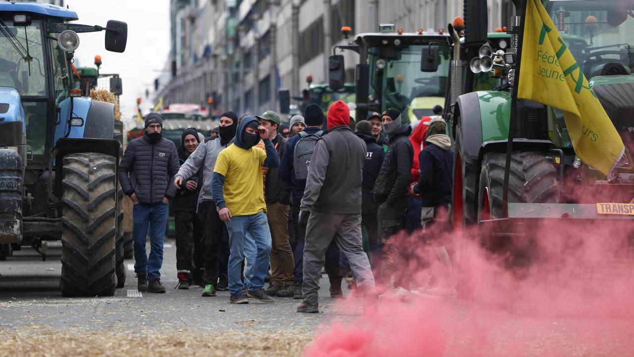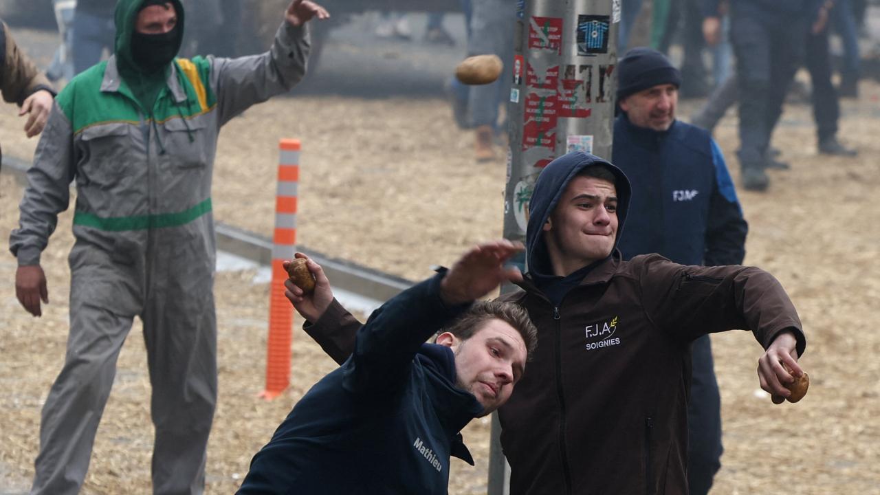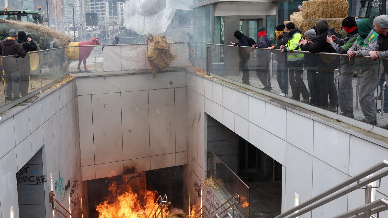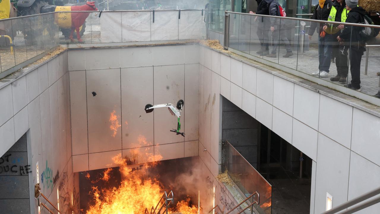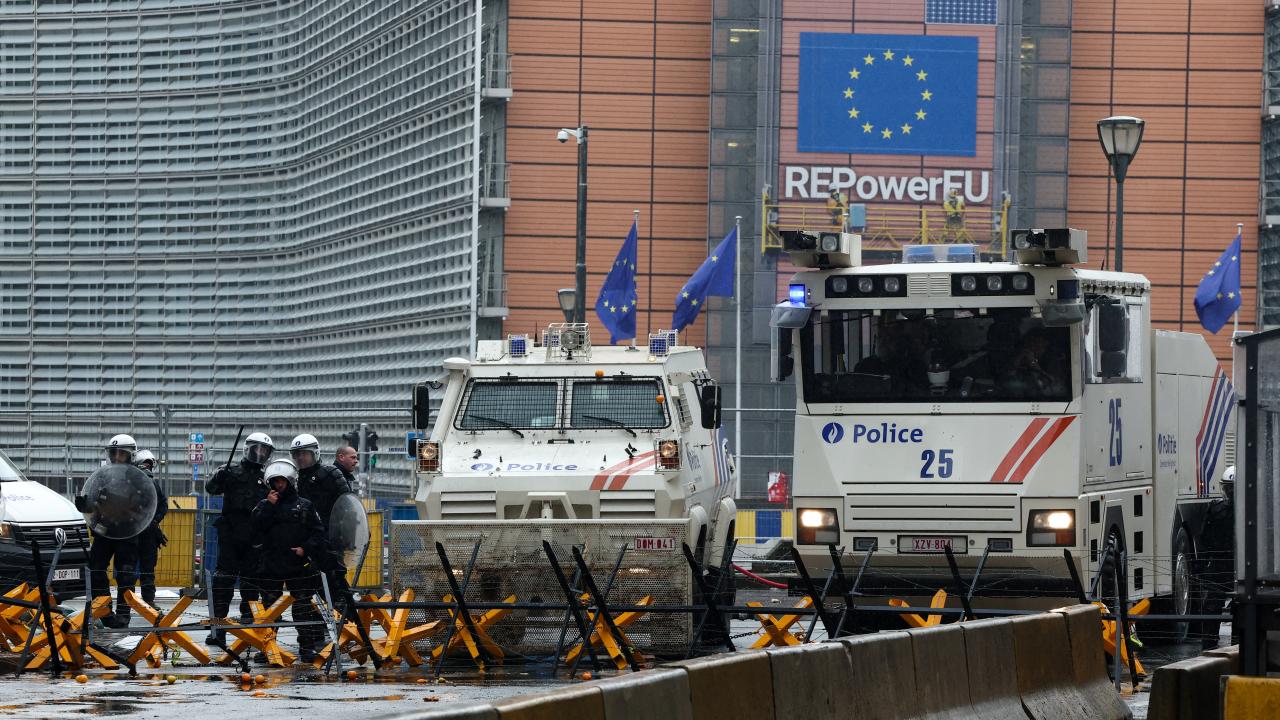 Çevreye sis bombaları, torpil ve havai fişekler atan çiftçiler, AB kurumlarına ve barikat önündeki polislerin üzerine yüzlerce yumurta fırlattı. Çiftçiler, polislerin üzerine sıvı hayvan gübresi sıktı.