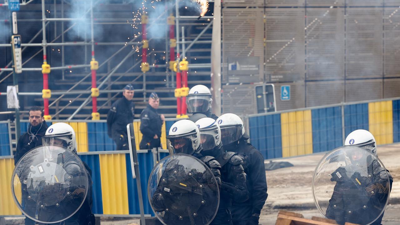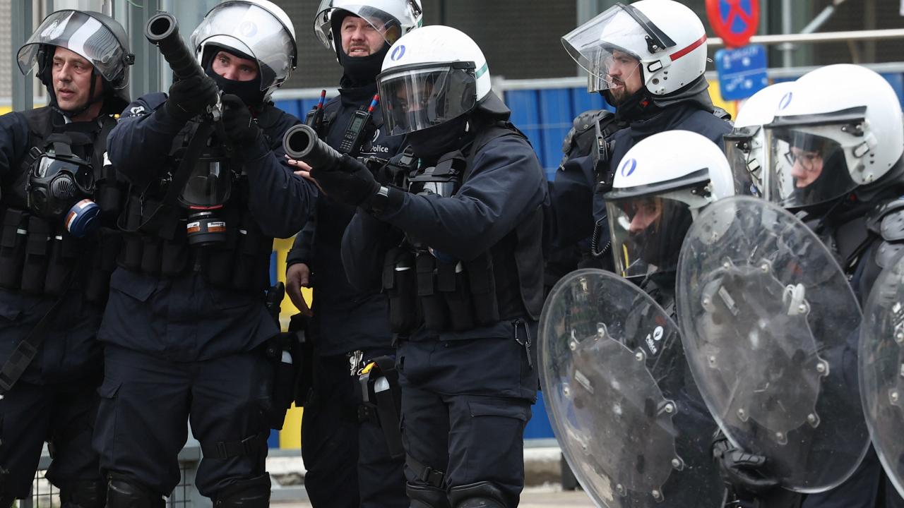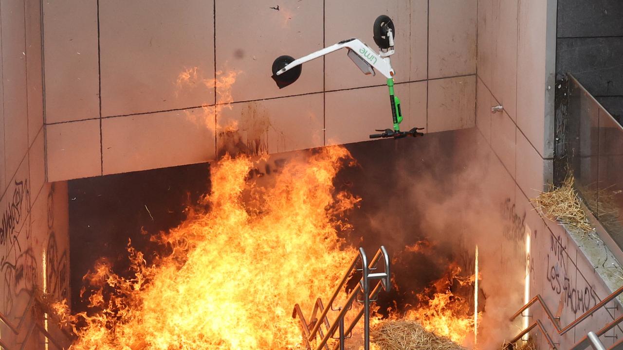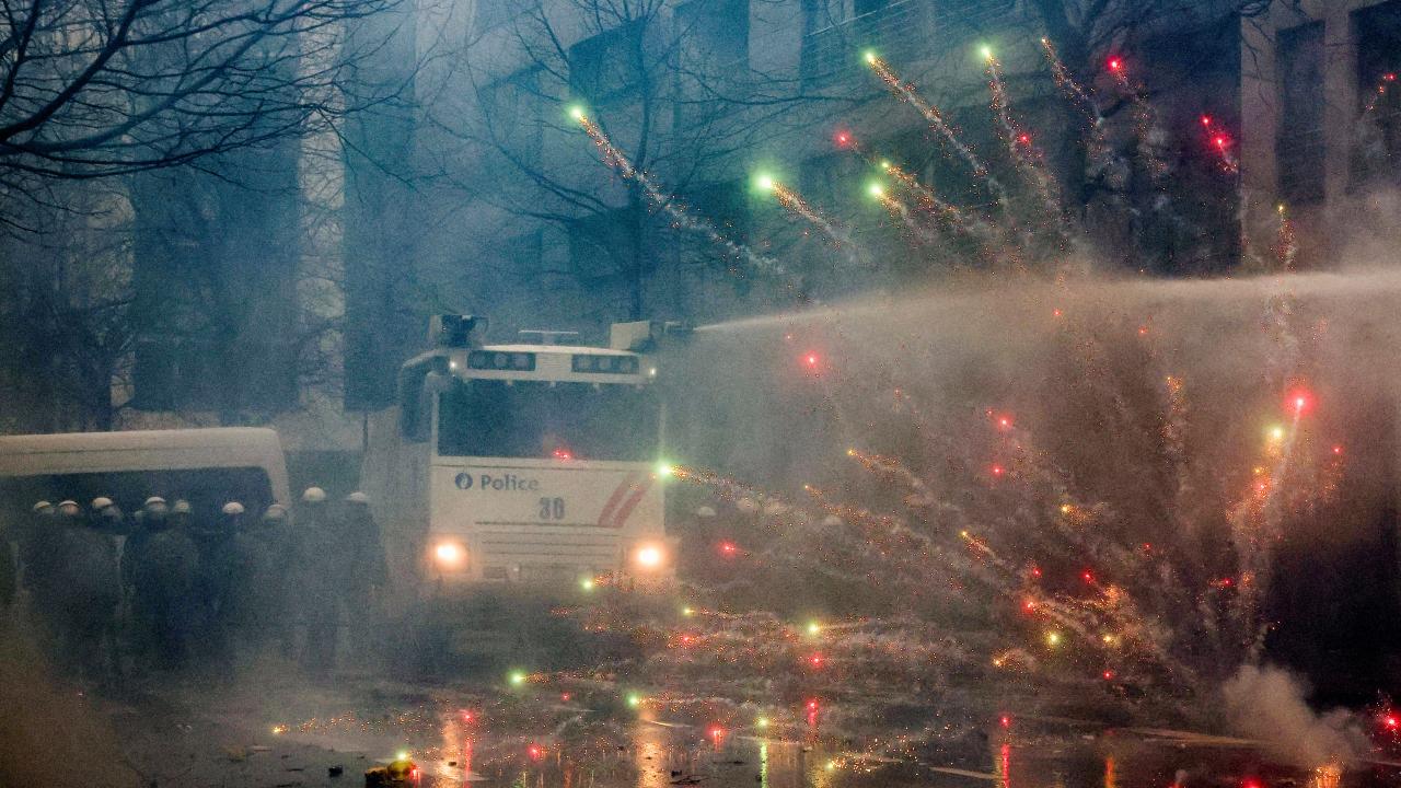Protestocular, Maalbeek metro istasyonu girişine döktükleri saman balyalarını ateşe verdi. Polis göstericilerin üzerine gaz ve tazyikli su sıkarak müdahale etti.